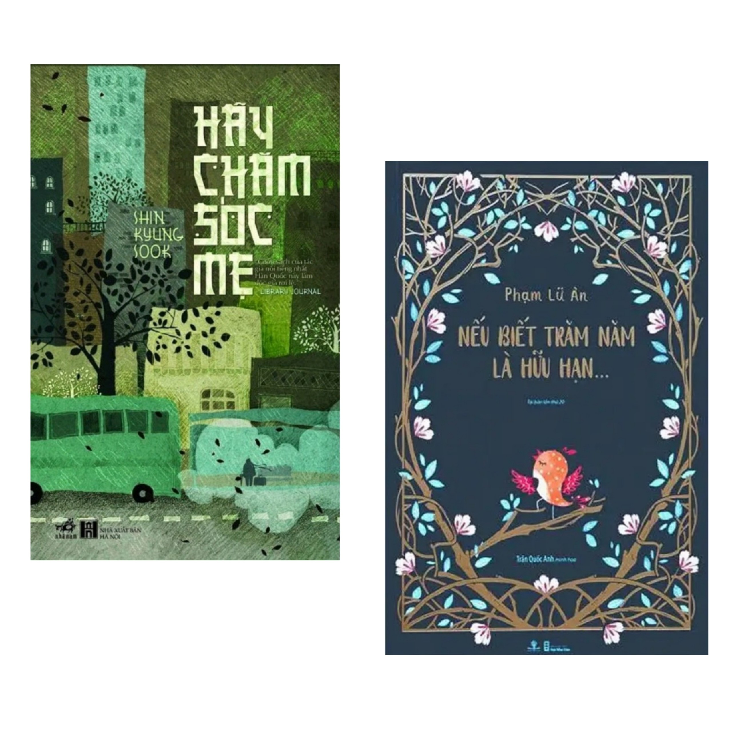 1.Hãy Chăm Sóc Mẹ (Tái Bản) Cuốn sách mê hoặc lạ thường này đã khẳng định vị trí của Shin Kyung-sook như một hiện tượng văn học châu Á, tạo ra trào lưu đọc mới ở Hàn Quốc từ sự cộng cảm trước một tác phẩm đầy sức mạnh. Bằng câu chuyện cảm động thấm thía về người mẹ đi lạc đường, tác giả dựng nên bức tranh rộng lớn về xứ sở quê hương, nơi cảnh trí và phong tục Hàn Quốc được khắc họa với vẻ đẹp tươi thắm nhưng thao thiết, đầy trắc ẩn. Những người con đi tìm mẹ, và họ mang theo dòng hồi ức riêng tư, lay động, vừa khao khát, vừa chống chếnh mất mát, thay phiên nhau dẫn người đọc trên một hành trình kép, tới những nẻo xa của một nền văn hóa độc đáo và tới những góc khuất sâu thẳm của trái tim. Năm 2009 Hãy chăm sóc mẹ của Shin Kyung-sook xuất hiện như một điểm sáng chói của văn học Hàn Quốc. Không chỉ thành công về mặt thị trường khi bán được hàng triệu bản, tác phẩm còn được giới phê bình đánh giá cao, nổi tiếng vang xa khắp các nước châu Á. Tác phẩm được xuất bản tại 19 nước, trong đó có Mỹ. 2.Nếu Biết Trăm Năm Là Hữu Hạn (Tái Bản) Nếu biết trăm năm là hữu hạn, đưa người đọc đến nhiều tầng của cung bậc cảm xúc, đến nhiều không gian tưởng chừng ta không thể quay về. Vừa hoài niệm, sâu sắc, vừa giản dị, chân thành, vừa quá khứ, hiện tại. Nếu biết trăm năm là hữu hạn cứ thế cuốn ta đi một cách nhẹ nhàng và đầy sâu lắng… Với tập hợp 40 truyện ngắn, chắc hẳn đâu đó xung quanh những câu chuyện ấy, ta sẽ vô tình bắt gặp chính ta. Nếu biết trăm năm là hữu hạn là một quyển sách dành cho nhiều người.