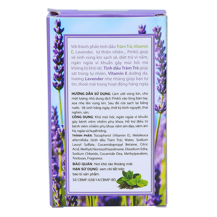 Dung Dịch Vệ Sinh Phụ Nữ PinkG Hương Lavender là dung dịch được nghiên cứu và chế tạo dành riêng cho việc vệ sinh vùng kín, nhằm phòng ngừa và giảm thiểu bệnh phụ khoa. Dung dịch chứa các thành phần từ tinh dầu thiên nhiên giúp làm sạch nhẹ nhàng vùng kín mà vẫn giữ được độ ẩm, giúp cân bằng da và rất an toàn.