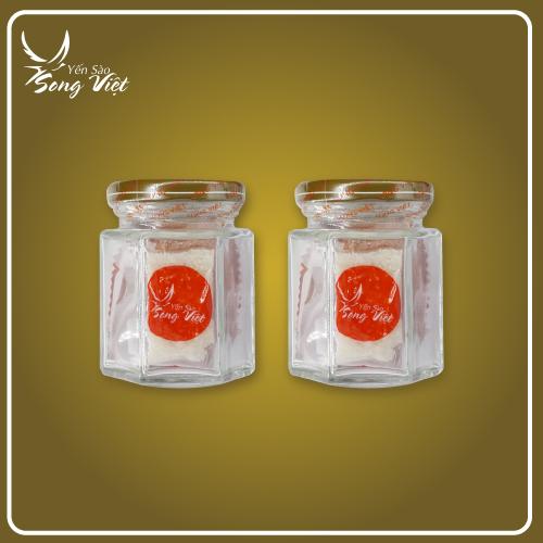 Hộp giấy lục giác kích thước 3x3x7 (cm) Gồm 1 phần yến 1,5 g + 1 gói đường phèn 7 g Tặng kèm 1 hũ thủy tinh tiệt trùng dùng để chưng yến 100% yến