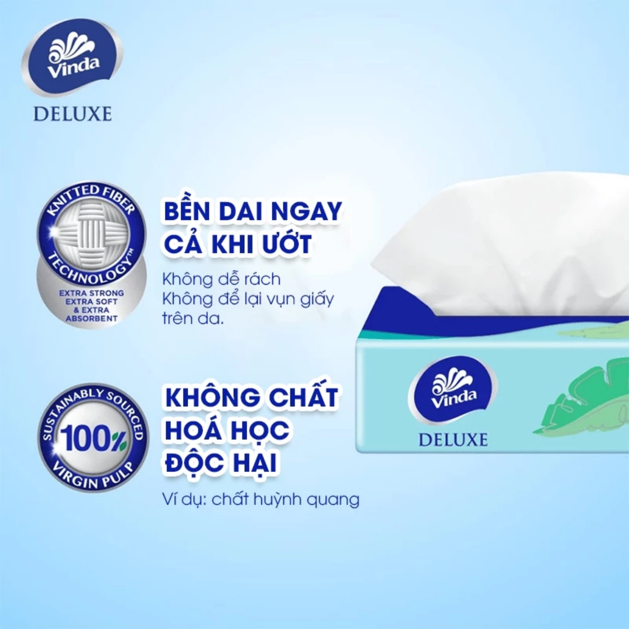 Mô tả sản phẩm Khăn giấy với thành phần 100% bột giấy nguyên sinh, không có các chất phụ gia, không chất tẩy trắng, không gây kích ứng da, an toàn cho người sử dụng.