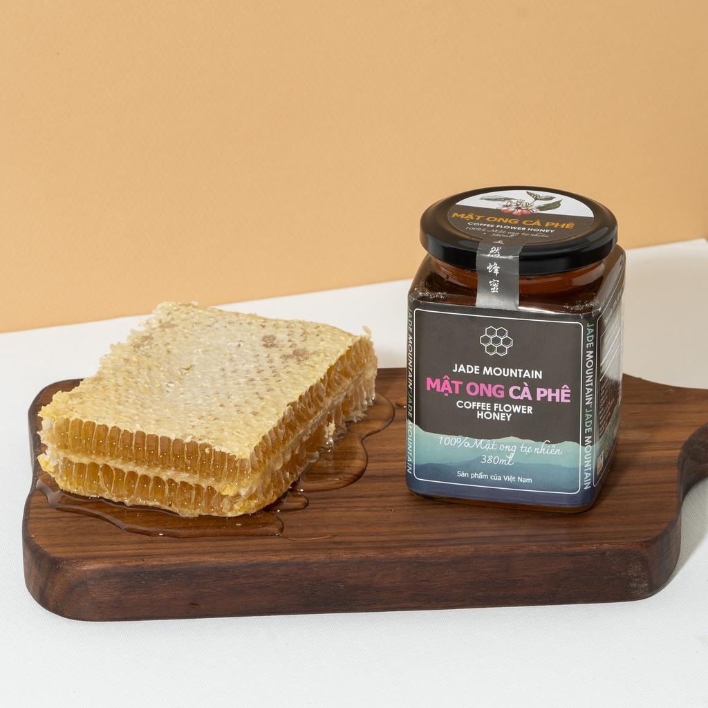 • Mật ong hoa cà phê Jade Mountain là mật ong chín tự nhiên, được vắt trực tiếp từ tổ, mật được lấy từ hoa Cà phê bởi những chú ong Apis Mellifera.