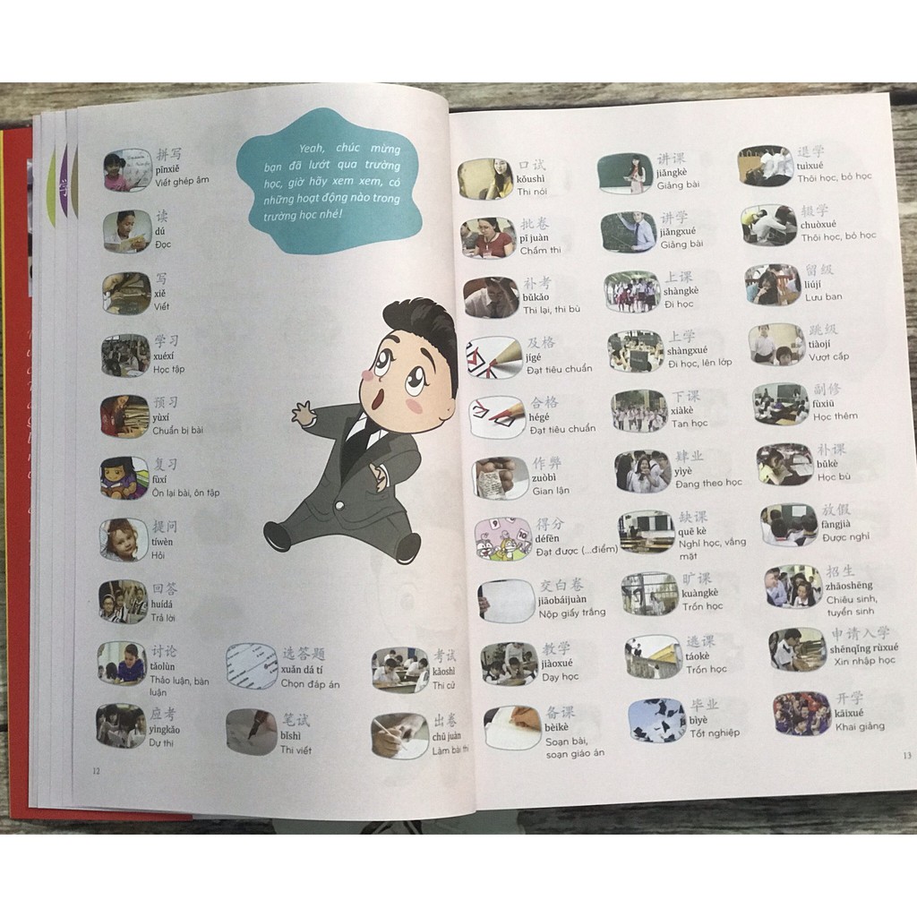 - Cuối cùng các hành động ở trên tạo ra kết quả ra sao, bạn và mọi người cảm thấy thế nà Là chúng ta sẽ có nhau nhóm TÍNH TỪ Thật tuyệt vời, từ 3 nhóm từ trên là chúng ta đã có ngay đầy đủ 3 nhóm từ chính và nhanh tay ghép vào các cấu trúc ngữ pháp để tạo thành câu hoàn chỉnh. Với mỗi chủ đề bạn sẽ lần lượt liệt kê ra các DANH TỪ, các ĐỘNG TỪ, các TÍNH TỪ liên quan được miêu tả sinh động và cực kỳ chi tiết qua hình ảnh chân thực. Tiếp đó sẽ có phát triển học thêm các PHÓ TỪ và TRẠNG TỪ qua các đoạn hội thoại mẫu mang tính ứng dụng cực kỳ cao giúp bạn sau này dễ dàng hơn rất nhiều trong việc học ngữ pháp đó nha. Cuốn sách này gồm 20 chủ đề thông dụng nhất trong đời sống với tổng cộng gần 5000 từ vựng khác nhau được miêu tả chi tiết qua hình ảnh và lồng ghép trong hội thoại. Các chủ đề bao gồm: Trường hoc, thư viện, nhà bếp, công viên, quán ăn, khách sạn, chợ và siêu thị, công ty, bệnh viện, nhà ga và bến xe, sân bay, quán cafe, phòng tắm và nhà vệ sinh, tiệm mát xa, cửa hàng điện thoại, rạp chiếu phim, nhà thi đấu thể thao, cửa hàng mỹ phẩm, cửa hàng thời trang. Ngoài từ vựng sách còn đưa thêm rất nhiều ví dụ giao tiếp và cấu trúc liên quan trực tiếp đến từng chủ đề để bạn dễ dàng bổ sung kiến thức liên quan trong quá trình tự học mà không cần phải tra các sách từ điển ngữ pháp khô khan!