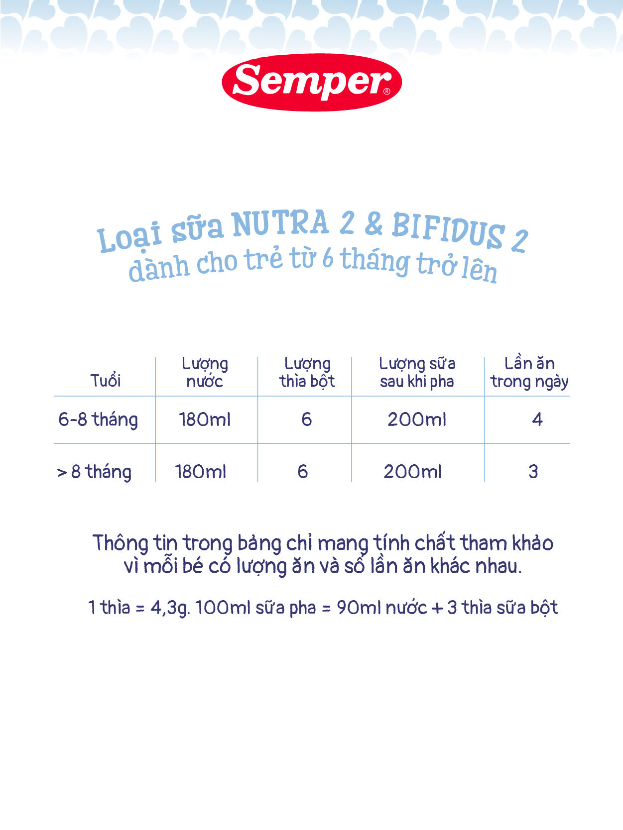 - Hương vị thơm ngon, béo ngậy, dễ uống, phù hợp với trẻ táo bón, lười ăn, chậm tăng cân. SEMPER BIFIDUS 2 - Sản phẩm sữa béo dành cho trẻ bị táo bón và trẻ không dung nạp đường Lactose.