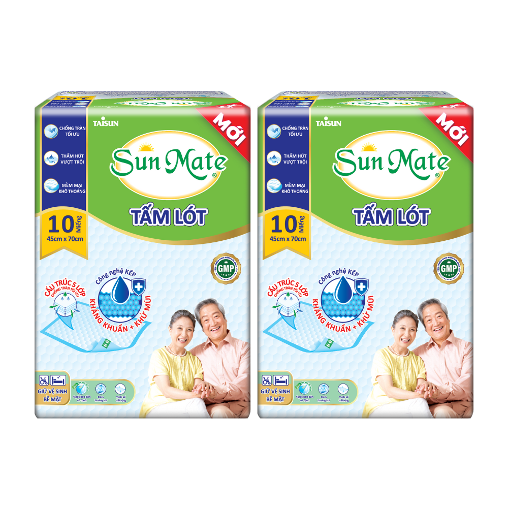 Sản phẩm tấm lót SunMate dành cho cả nam và nữ, phù hợp với người hạn chế khả năng đi lại. Hạt gel tác động kép siêu thấm hút và kháng khuẩn hiệu quả cùng lớp dẫn thấm thông minh thấm hút nhanh, ngăn thấm ngược hiệu quả, giúp luôn khô thoáng, thoải mái cho người sử dụng.