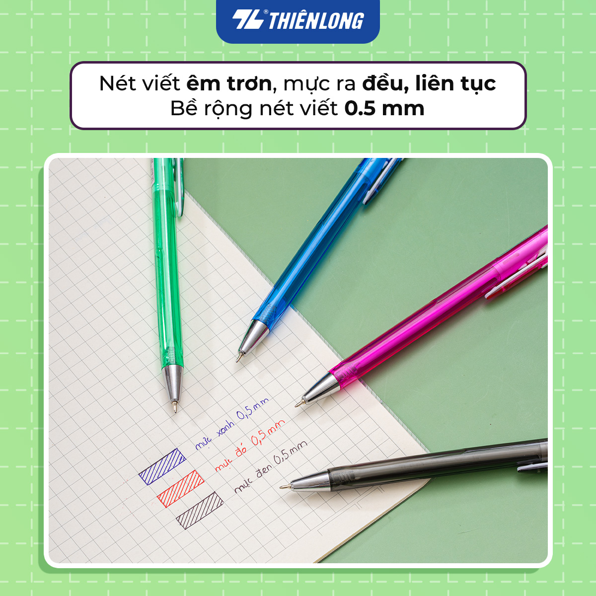 Thương hiệu: Thiên Long Xuất xứ: Việt Nam Tính năng nổi bật: Bút có thiết kế hiện đại, thân tròn, dài rất phù hợp với tay cầm của học sinh, sinh viên, nhân viên văn
