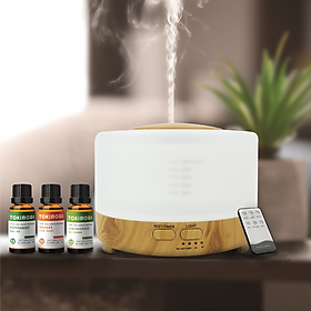 Máy phun sương tinh dầu Tạo Ẩm Khuếch Tán Tinh Dầu Kèm Đèn, không gây ồn, tặng kèm điều khiển từ xa và tinh dầu TOKI MORI - Kiểu dáng thanh lịch phù