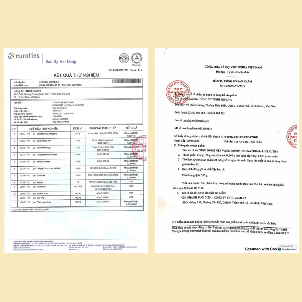 - Tinh bột nghệ chứa hàm lượng curcumin càng cao thì có tác dụng càng tốt trong việc hỗ trợ bệnh và cải thiện duy trì sức khỏe. - Tinh nghệ nếp vàng ngon, dễ dùng, thơm dịu ít hăng hơn. Curcuminoid và curcumin Khi nói đến nghệ vàng, người ta thường nhắc nhiều đến curcumin vì nó là loại curcumin (chính thức) có nhiều nhất trong hợp chất curcuminoid. Ngoài curcumin chính thức chiếm hơn 70% khối lượng, hợp chất Curcuminoid có chứa nhiều loại curcumin khác. Đó là demethoxy - curcumin (DMC) chiếm gần 20%, và bisdemethoxy - curcumin (BDMC) chiếm dưới 5%. Ngoài ra, còn có một số loại curcumin khác với tỷ lệ khối lượng rất nhỏ. Demethoxy - curcumin và bisdemethoxy - curcumin là hai dẫn chất của curcumin chính thức. Nhờ có các dẫn chất này, cơ thể chúng ta hấp thu curcumin chính thức tốt hơn. Và do đó, tác dụng dược lý mạnh hơn nếu chỉ dùng chiết xuất curcumin cùng hàm lượng Tại sao cần bổ sung tinh chất curcumin vào tinh nghệ nếp vàng? Như các sản phẩm nông nghiệp khác, nghệ nếp vàng cho hàm lượng curcuminoid thay đổi theo mùa vụ. Để ổn định chất lượng cho Tinh nghệ nếp vàng Honimore, Công ty Zemlya đã bổ sung tinh chất curcumin vào sản phẩm. Nhờ bổ sung, mỗi 100g tinh nghệ nếp vàng Honimore luôn có chứa hơn 900 mg curcumin. Hàm lượng này cao hơn 20 lần các loại tinh nghệ vàng khác. III. THÔNG TIN SẢN PHẨM - Tên sản phẩm: Tinh nghệ nếp vàng - Thương hiệu: Honimore - Thành phần: 99,367g tinh nghệ nếp vàng nguyên chất; 0,633g Curcumin - Nhà sản xuất: Công ty TNHH Zemlya - Quy cách đóng gói: Hũ thủy tinh. - Khối lượng: 200gr - Hạn sử dụng: 30 tháng kể từ ngày sản xuất - Giấy kiểm nghiệm số AR-23-VD-053851-01 được cấp bởi Eurofins IV. ƯU ĐIỂM NỔI BẬT