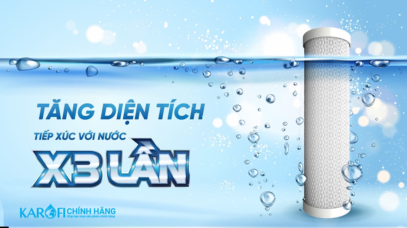 Nhờ thiết kế tối ưu, diện tích tiếp xúc với nước tăng gấp 3 so với thông thường, giúp lọc nhanh hơn, giảm nguy cơ bị tắc lõi.