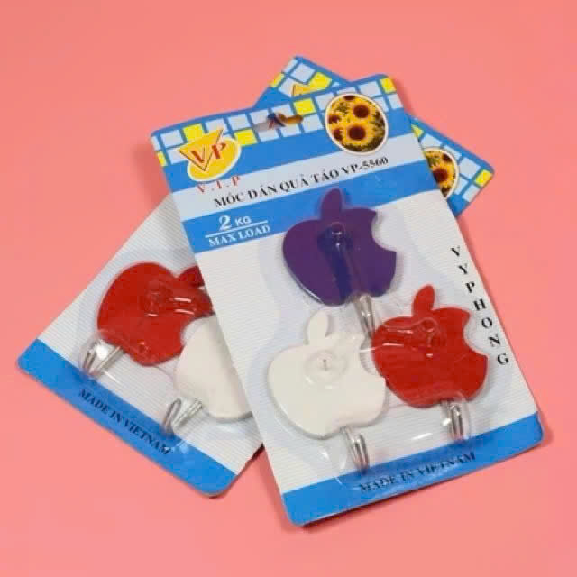 ✨COMBO 3 Móc Dán Tường Hình Quả Táo VP-5560 – Có Đinh Thép Đi Kèm, Vòng Móc Inox Nhỏ Gọn Chịu Lực 3Kg - HÀNG CHÍNH HÃNG MINIIN