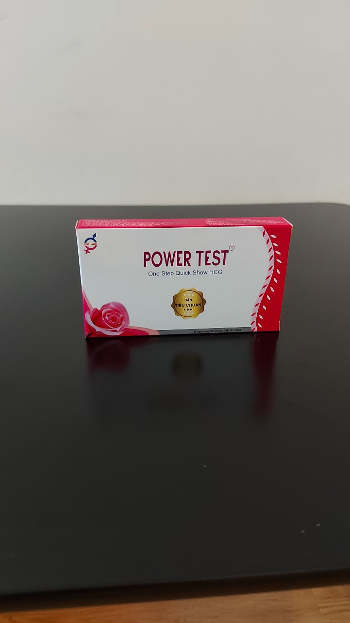 Tên sản phẩm: Que thử thai PowerTest Kích thước test: rộng 5mm Tính năng: Phát hiện thai sớm sau 6 -9 ngày trứng rụng ƯU ĐIỂM: Phát hiện thai sớm sau 6 -9 ngày