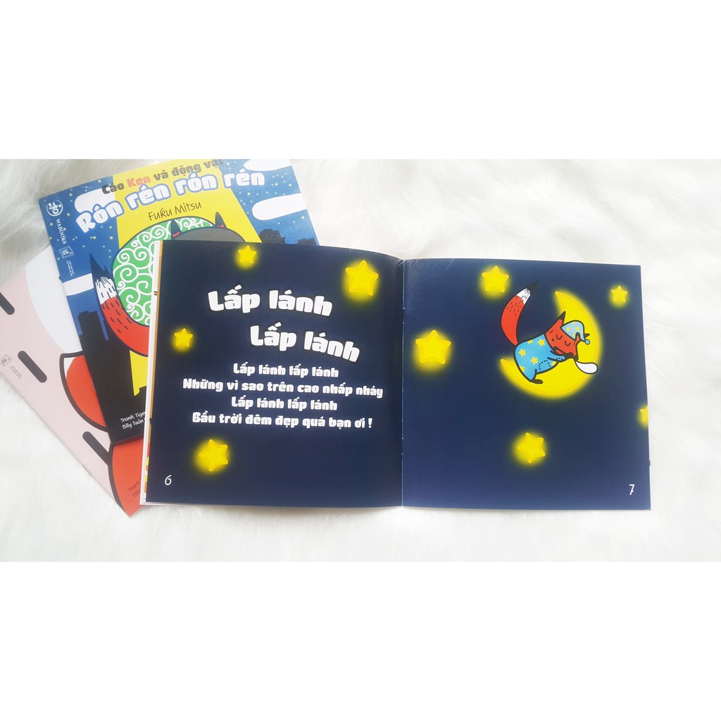Những cụm từ láy gợi tả âm thanh, màu sắc, hành động như “lộp bộp lộp bộp”, “lấp lánh lấp lánh”, “rón rén rón rén” được lấy làm tên cho các mẩu chuyện đã gợi nên trong tâm trí sự đáng yêu, và thu hút. Vậy nên, chỉ cần đọc lên những âm điệu đó, trẻ lập tức sẽ bị chú ý bởi những cuốn sách này. Với những câu từ đó, trẻ sẽ giữ được sự tập trung lâu hơn, vui vẻ hơn khi đọc sách, nhất khi là bố mẹ dùng giọng đọc ấm áp của mình để truyền tải chúng. Đôi mắt to tròn của con nhìn theo tay mẹ chỉ vào từng trang sách, điệu cười khúc khích là dấu hiệu cho mẹ biết con thích thú đến cỡ nào đấy!