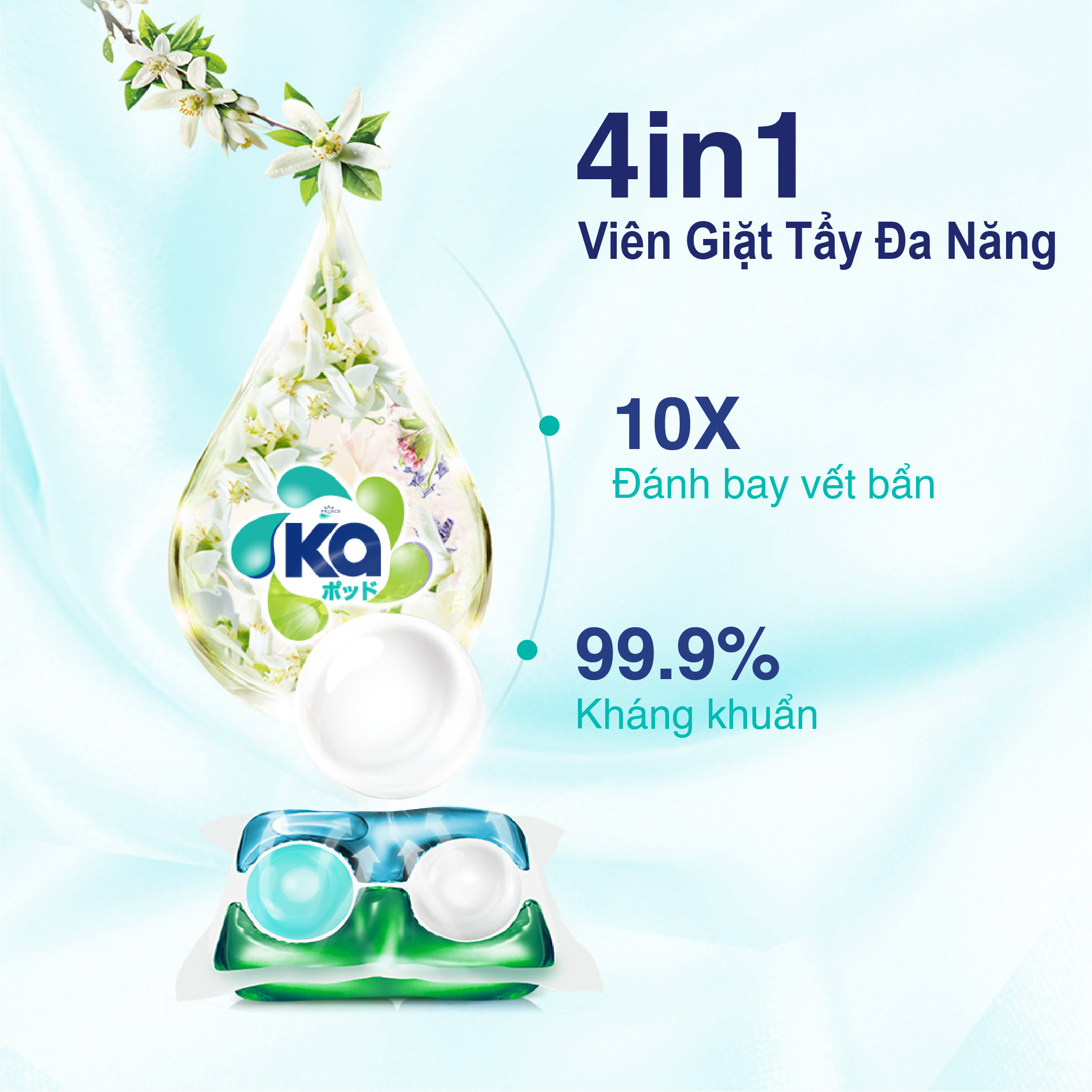 Không còn tình trạng rơi đổ lộn xộn và phải đong đếm bột giặt, việc giặt giũ sẽ tiện lợi hơn với Viên giặt đa năng Ka 4 trong 1.