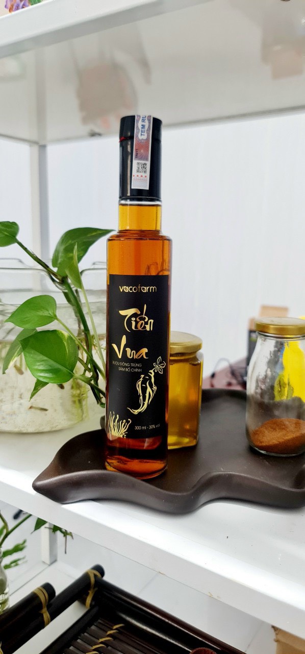 Tên sản phẩm: Tiến Vua được lọc qua thiết bị hiện đại giúp loại bỏ nhiều chất có hại như andehit, methanol, este , loại bỏ hoàn toàn cặn và giúp rượu được đầm hơn hơn có thể so sánh như được hạ thổ 5 năm. Sau khi lọc, được trực tiếp ngâm cùng Nấm Đông Trùng Hạ Thảo.
