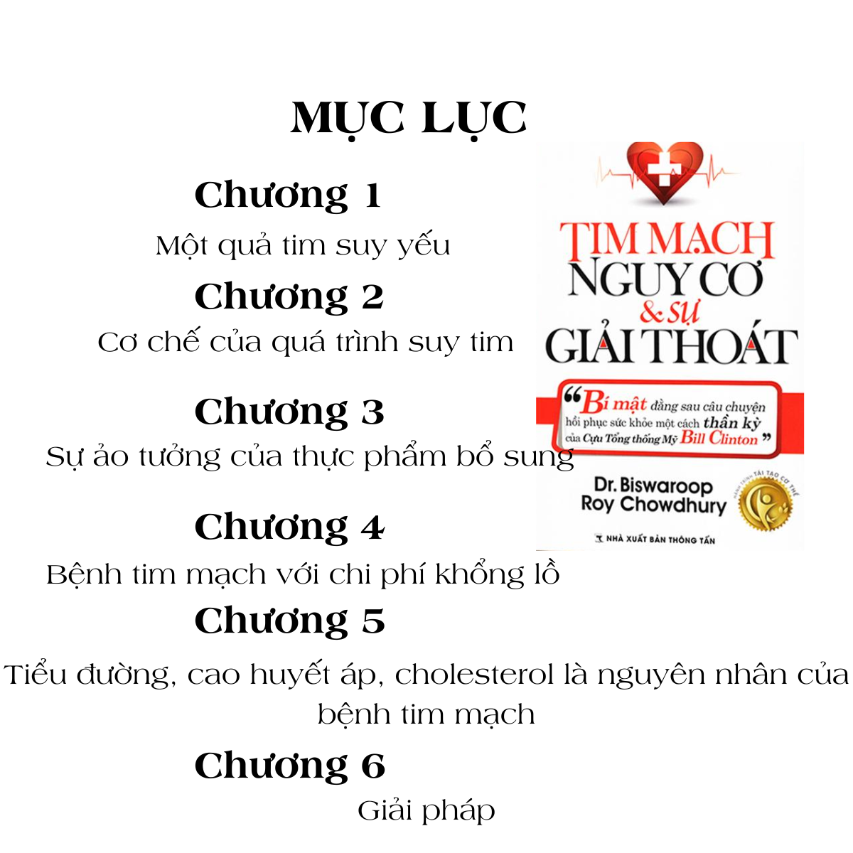 TIM MẠCH - NGUY CƠ VÀ SỰ GIẢI THOÁT Nếu bạn hay bất kỳ người thân nào trong gia đình đang mắc một trong các bệnh tim mạch, tăng huyết áp, tiểu đường, cholesterol cao, hoặc béo phì... Hãy tưởng tượng một sáng thức dậy, bạn trở nên khỏe mạnh như trước đây! Và thậm chí không cần dùng bất kì viên thuốc nào... Để biết bí quyết, hãy đọc "Tim Mạch - Nguy Cơ Và Sự Giải Thoát" Một số sự thật trong cuốn sách này: