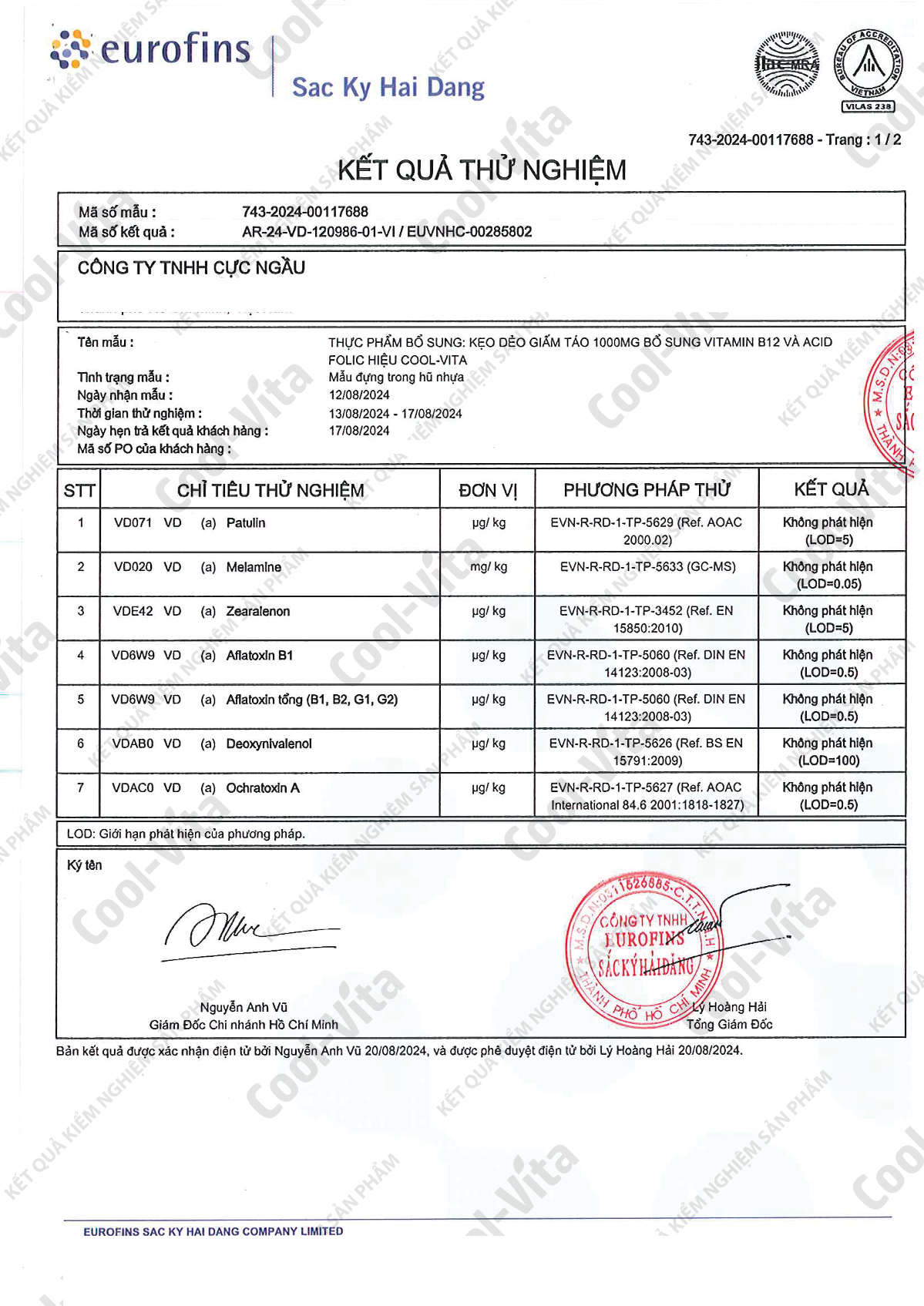 - Thân thiện với người ăn chay, an toàn và lành mạnh: Sản phẩm có chứa pectin thực vật, phù hợp cho người ăn chay, không chứa màu, hương liệu và chất bảo quản nhân tạo mà sử dụng màu sắc và hương vị tự nhiên. Vì sao nên chọn Kẹo Dẻo Giấm Táo COOL-VITA? Tiện lợi và dễ sử dụng: Chỉ với 2 viên kẹo dẻo mỗi ngày, bạn sẽ bổ sung 1000mg giấm táo và các dưỡng chất thiết yếu mà không cần phải pha chế phức tạp. Vị táo tươi mát, dễ chịu: Kẹo dẻo có vị táo tự nhiên, không gây ngán, mềm mịn, dễ ăn mà không bị dính răng. Sản phẩm an toàn, không chứa màu, hương liệu và chất bảo quản nhân tạo mà sử dụng màu sắc và hương vị tự nhiên, phù hợp với nhiều đối tượng người dùng. Khối lượng tịnh: 180g (60 viên x 3g) Thành phần: Đường trắng tinh luyện, Siro mạch nha (38,6%), Giấm táo (17,4%), Chất làm dày: Pectin, Chất điều chỉnh độ acid: Acid citric, Dầu thực vật (chứa chất chống đông vón: Sáp carnauba), Hương liệu táo tự nhiên, Chất điều chỉnh độ acid: Natri citrat, Chất tạo màu tự nhiên: Nước ép trái cây và rau quả, Vitamin B6 (dạng Pyridoxin hydrochlorid) (0,026%), Acid Folic (0,017%), Iốt (Kali iodid) (0,0023%), Bột củ dền, Bột lựu đỏ, Vitamin B12 (dạng Cyanocobalamin) (0,0001%). Hướng dẫn sử dụng: