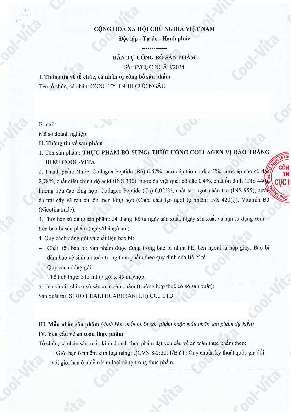 • Đặc điểm vượt trội của nước uống Collagen Cool-Vita: