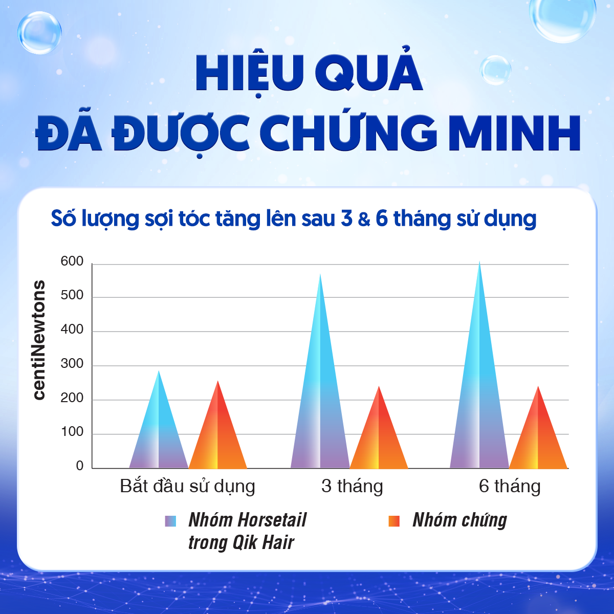 - KẾT QUẢ NGHIÊN CỨU LÂM SÀNG Kết quả nghiên cứu lâm sàng tại Đại Học Pavia cho thấy Cynatine có trong Qik Hair giúp hỗ trợ: • Giảm rụng tóc 4 lần sau 1 tháng • Tăng mọc tóc ở 90% người dùng sau 3 tháng • Độ chắc của tóc tăng lên ở 75% người dùng • Tăng độ bóng mượt của tóc ở 95% người dùng Ngoài ra, Qik Hair còn giúp hỗ trợ ổn định độ ẩm, độ đàn hồi và độ săn chắc của da đầu. Bảo quản: Nơi khô ráo, thoáng mát, nhiệt độ dưới 30 độ C, tránh ẩm và ánh nắng mặt trời, để xa tầm tay trẻ em. Thông tin về công dụng sản phẩm công bố theo giấy phép SĐK: 5396/2018/ĐKSP.