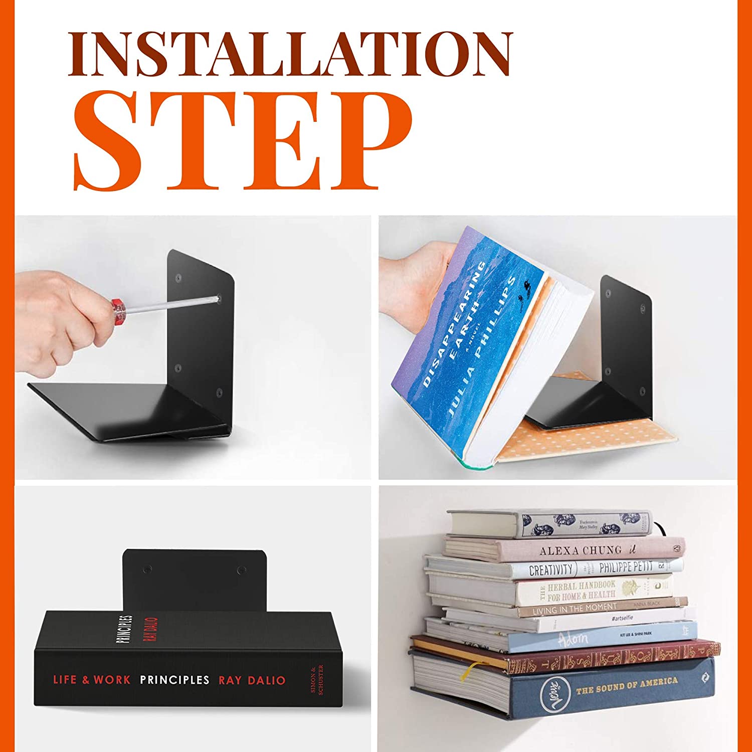 ✨Combo 4 kệ sách nổi vô hình, giá sách kim loại trang trí tường - Màu đen