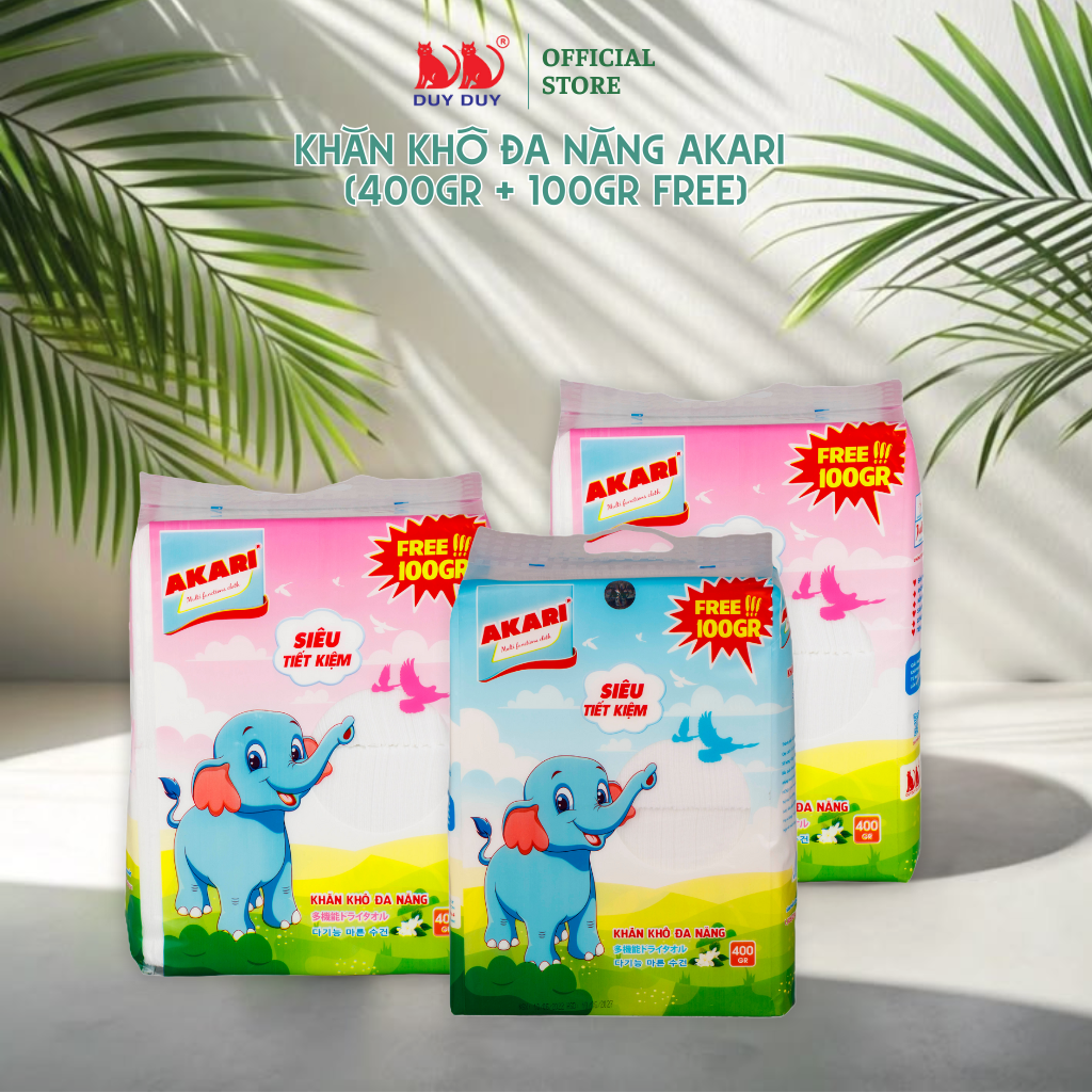 ombo Khăn khô đa năng Akari vải sợi tự nhiên 500gr (13.5x20cm) dạng rút siêu tiết kiệm Khăn khô đa năng Akari 400gr +100 Free được làm từ vài không dệt Rayon giải pháp chăm