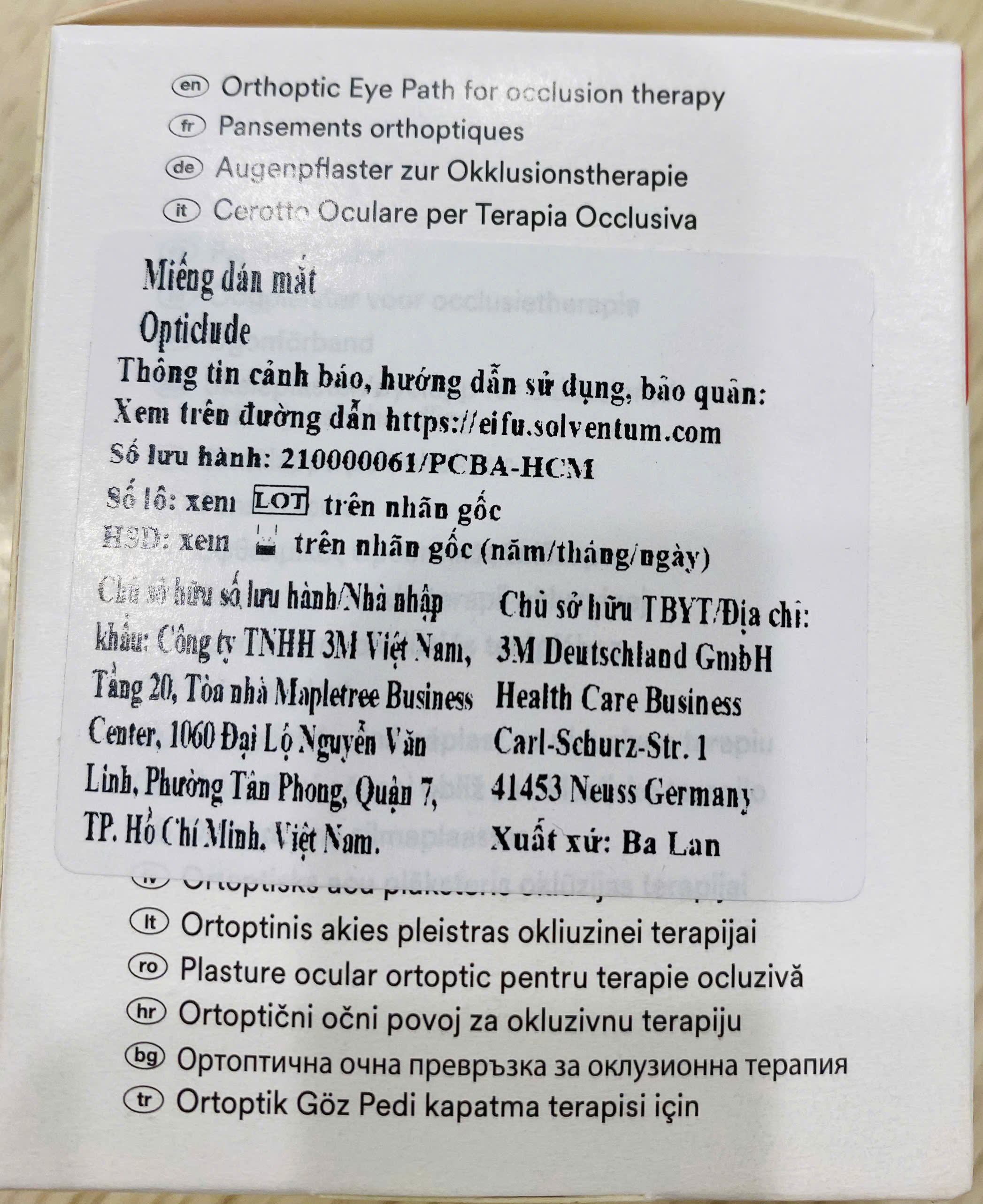 Tính năng sản phẩm: Để khắc phục chứng suy giảm thị lực buộc trẻ phải sử dụng mắt bị lười Việc che mắt tốt buộc mắt lười phải hoạt động giúp hồi phục lại thị lực bình thường Sợi không dệt màu da, phía sau là keo acrilat bám dính tốt Sợi Rayon với màng phim polyetylen thân thiện với làn da Được thiết kế chuyên biệt, ôm khít vùng da mắt Thông thoáng dễ chịu, không gây kích ứng khi tiếp xúc với làn da Bám dính tốt, có thể tái sử dụng Tháo dễ dàng, không gây đau, không để lại vết keo trên da khi sử dụng