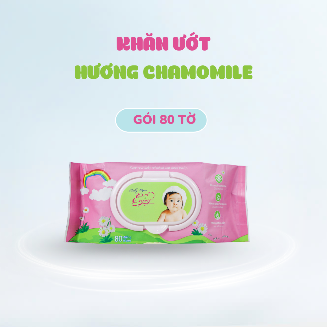 - Khăn ướt baby Enjoy 80 tờ hương Chamomile: Hương Chamomile nồng ấm và ngọt ngào