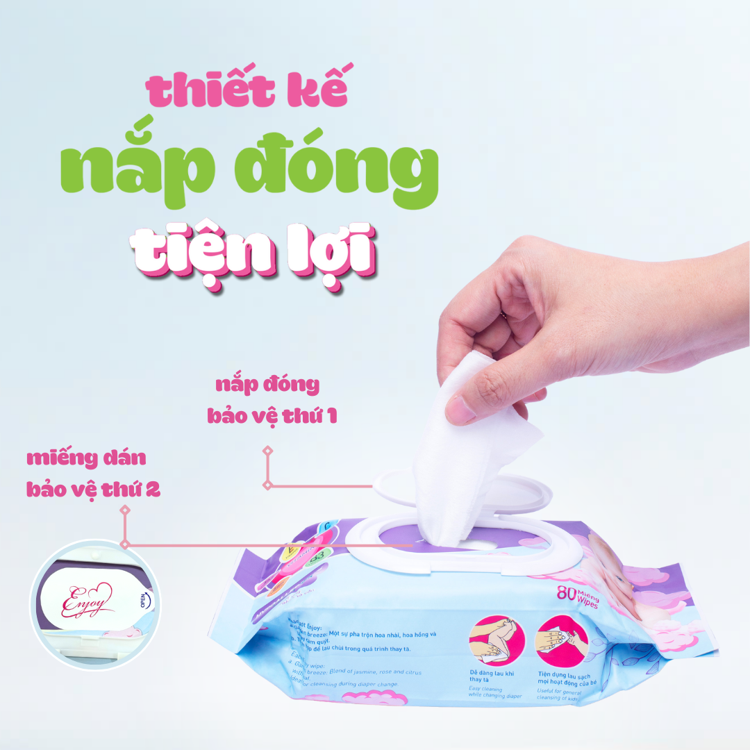 ✨COMBO 5 Khăn ướt baby ENJOY mềm mại, dưỡng ẩm, tiện dụng, đạt chuẩn sức khỏe SGS - Gói 20/50/80 tờ