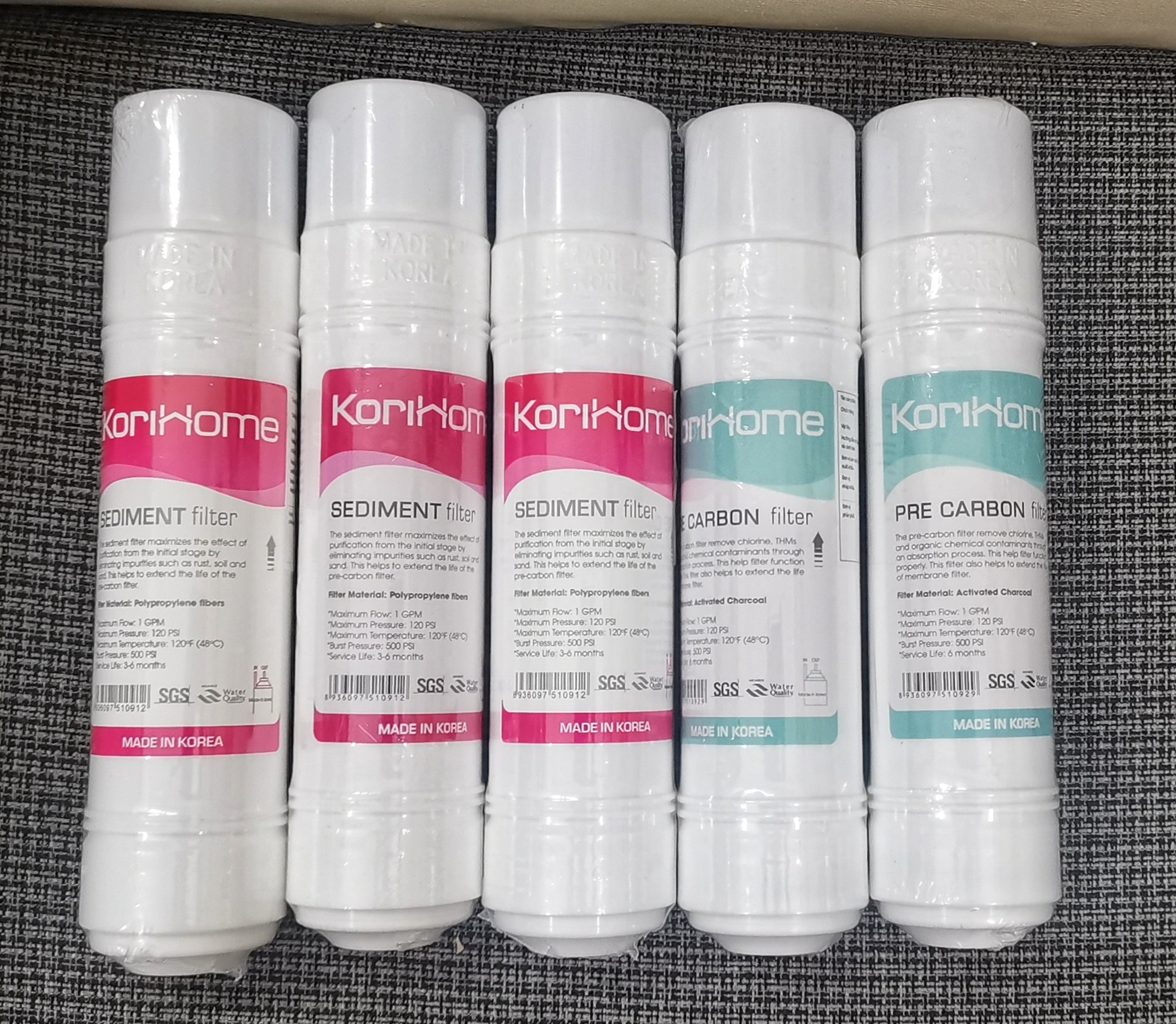 ✨Combo 5 lõi lọc nước Korihome 3 sediment 2 Pre carbon - Hàng chính hãng dùng cho các máy Wpk-G61, G-60S