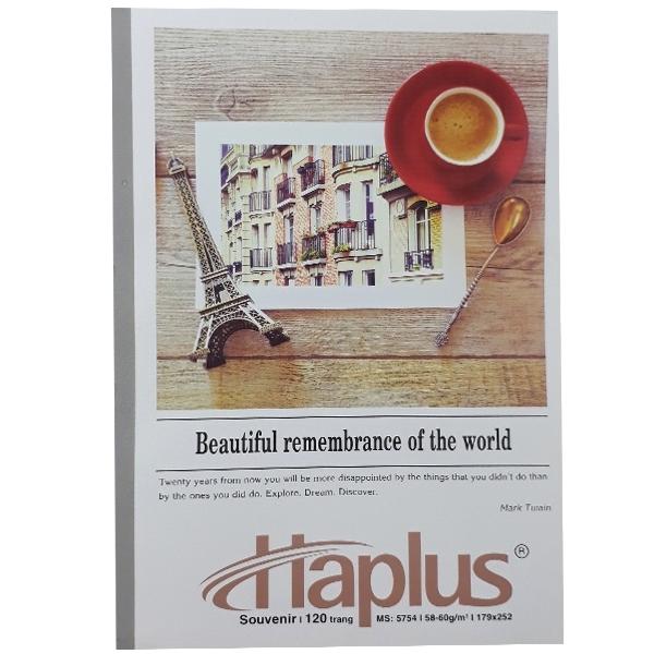 Vở Haplus Souvenir Kẻ Ngang 120 Trang 5754 - Vở Haplus được làm từ loại giấy trắng đẹp và mịn, không lóa mắt khi viết, giấy viết không lem, định lượng : 70g/m2, ăn mực