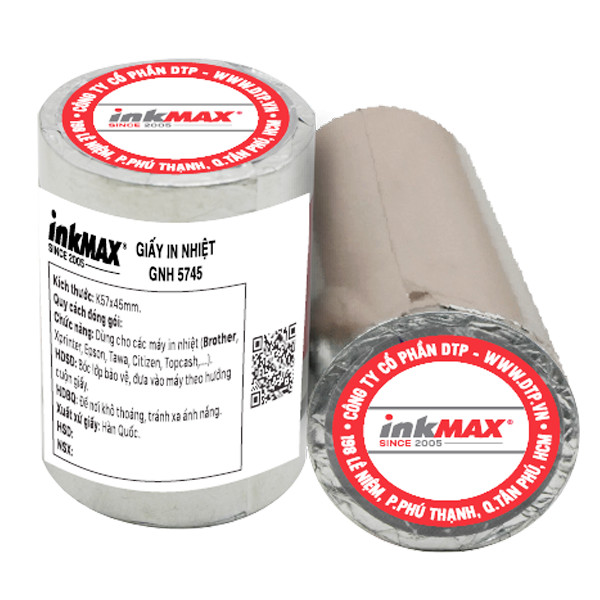 Thông số: - Thương hiệu: inkMAX - NSX: Hansol (Hàn Quốc) - Khổ giấy: 57mm - Đường kính (Phi): Ø 38mm - Sử dụng: in Bill, hóa đơn bán hàng,.. MỤC ĐÍCH SỬ DỤNG -