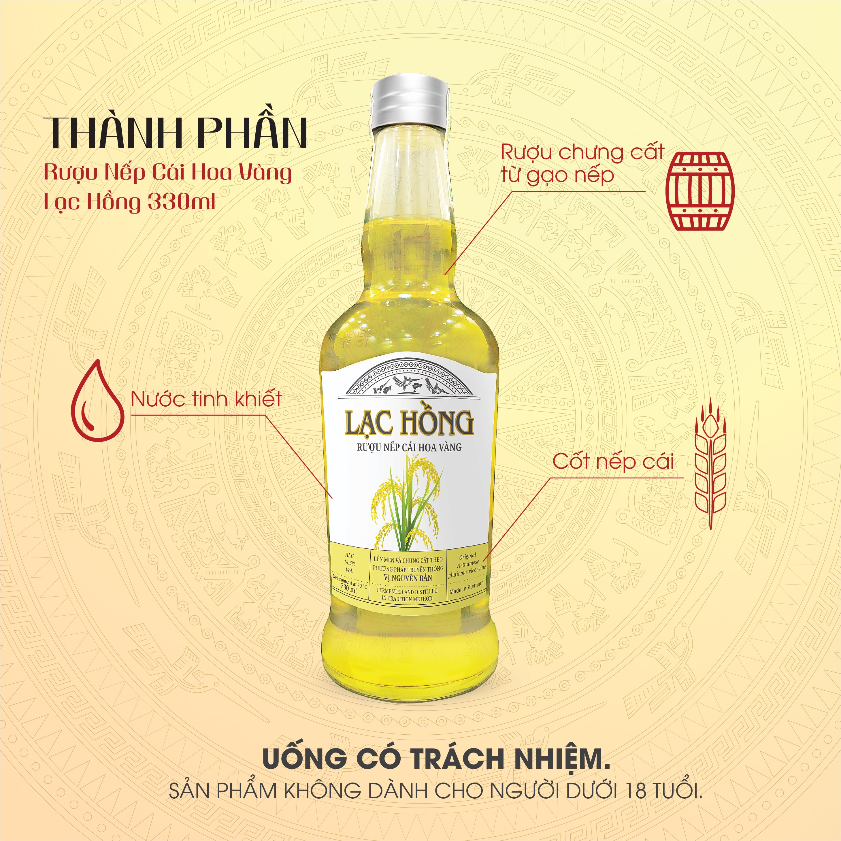 ✨[COMBO 6 CHAI] Rượu Nếp Cái Hoa Vàng Lạc Hồng vị nguyên bản chưng cất theo phương pháp truyền thống 330ml