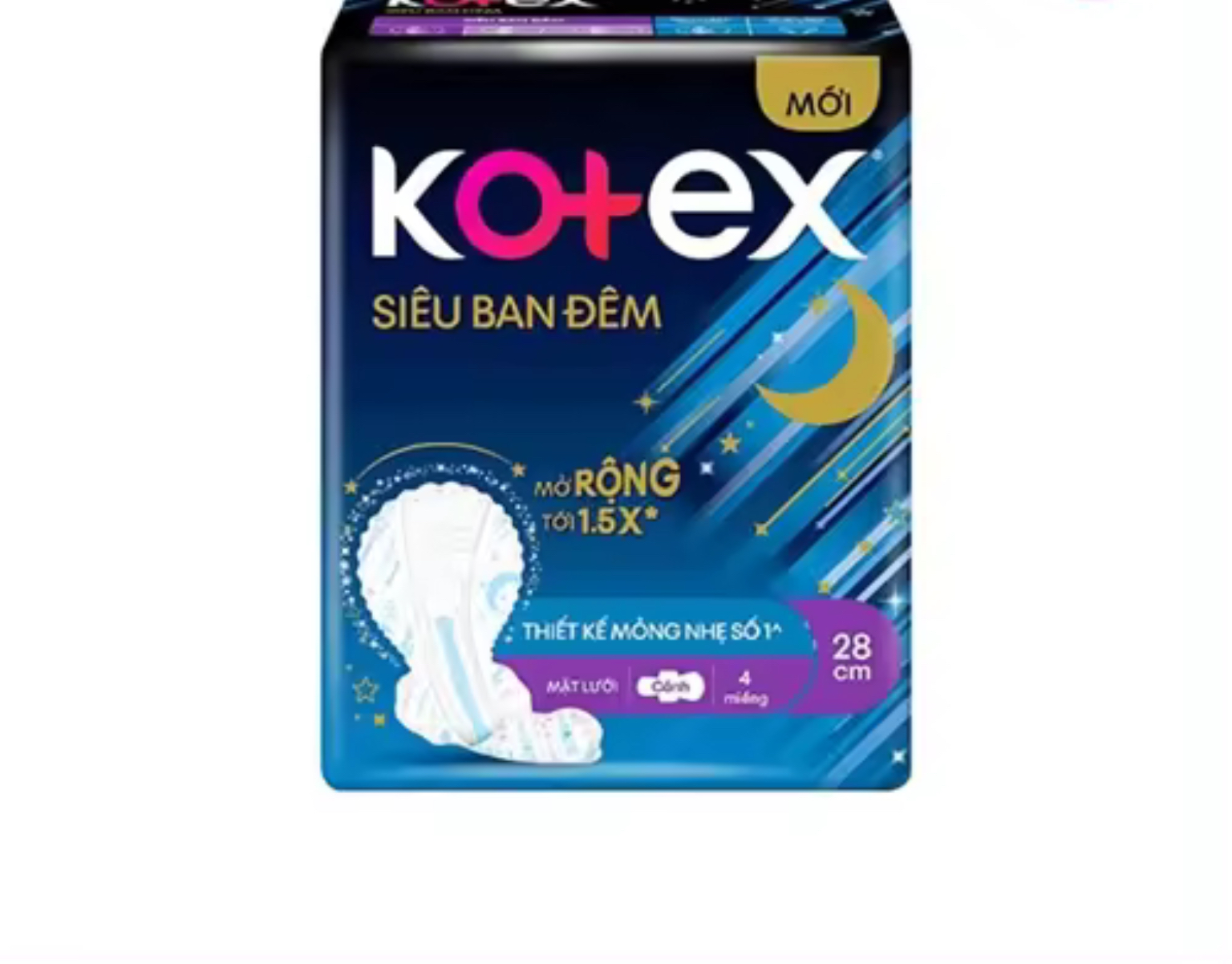 Băng Vệ Sinh KOTEX BẢO VỆ TOÀN DIỆN NGÀY NHIỀU VÀ ĐÊM MỚI Phiên bản 28cm dài hơn 1,2 lần so với băng ban ngày, với: • DÀI HƠN 1,2X bảo vệ tốt hơn cho