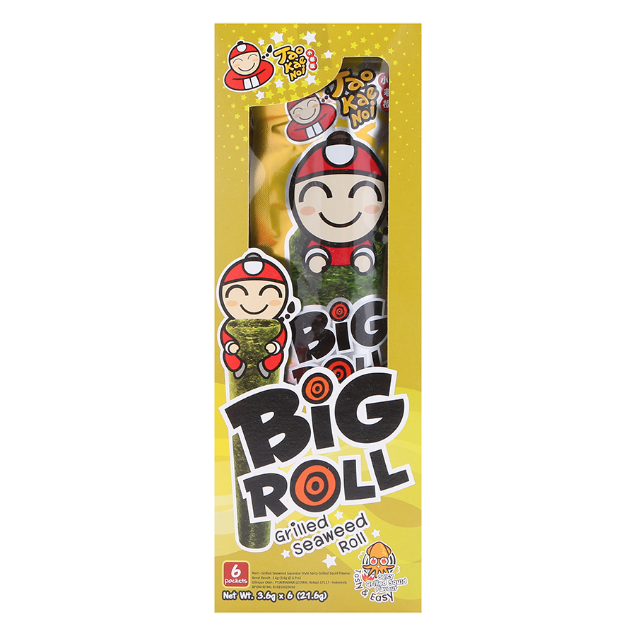 Snack Rong Biển Taokaenoi BIG ROLL Thái Lan nhiều vị: truyền thống, mực, cay,. Rong biển cuộn tròn nướng giòn tan đậm vị, thơm ngon hấp dẫn Thành phần: - 95% tảo biển - Đường
