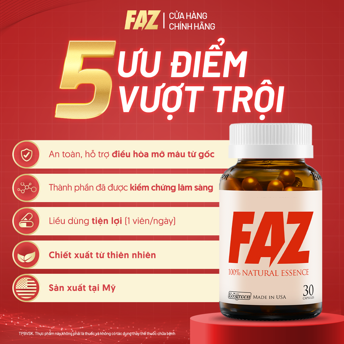 - 1 Hộp viên uống FAZ 30 viên: Hỗ trợ điều hòa mỡ máu và tim mạch *Cách dùng: Uống 1 viên/ngày