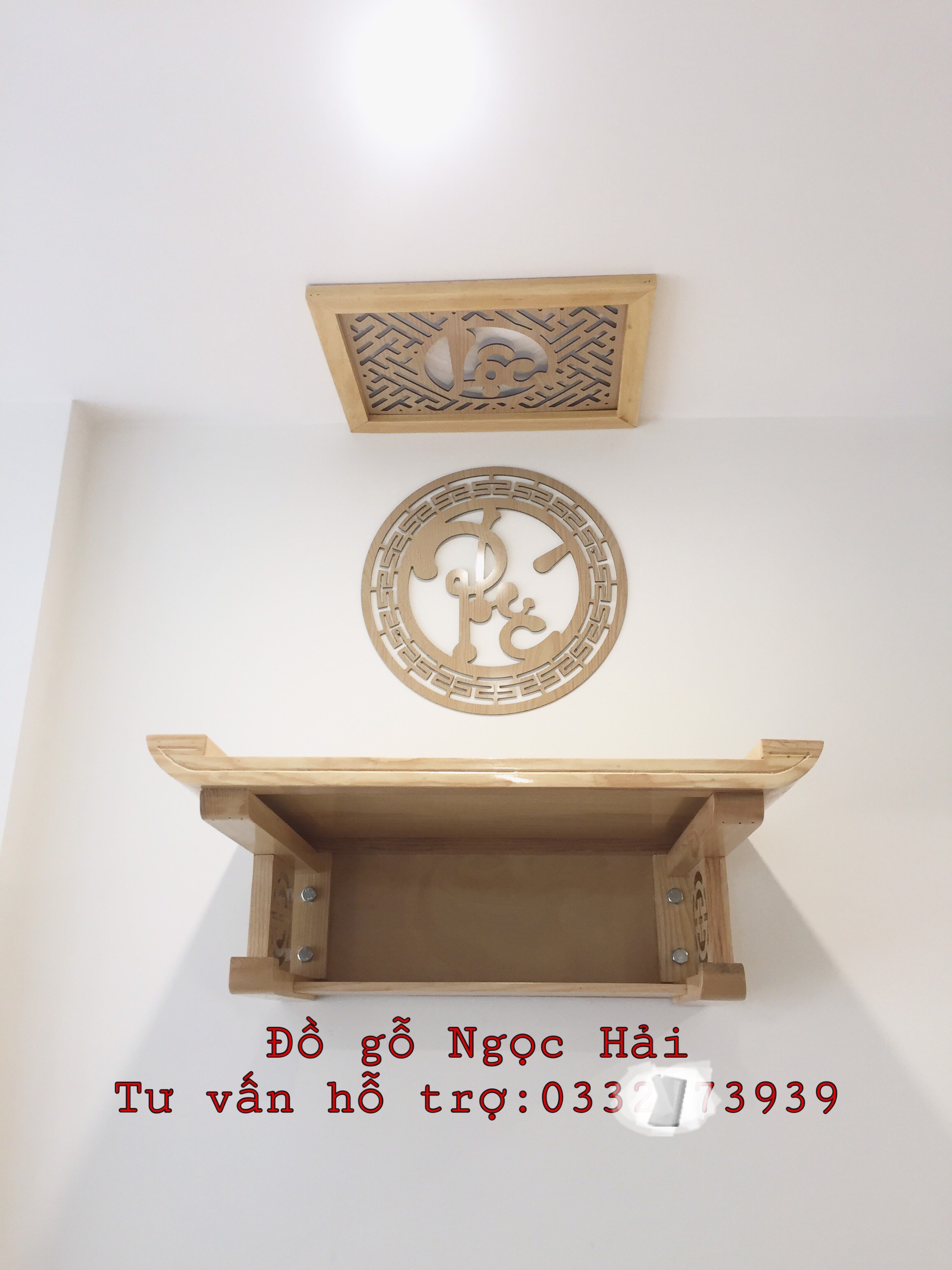 _ Combo bộ bàn thờ cúng được làm bằng chất liệu gỗ sồi nga tự nhiên 100% _Tấm ám khói khung gỗ sồi ,cnc lá chắn bằng mica và chữ phúc hay chữ bất kỳ