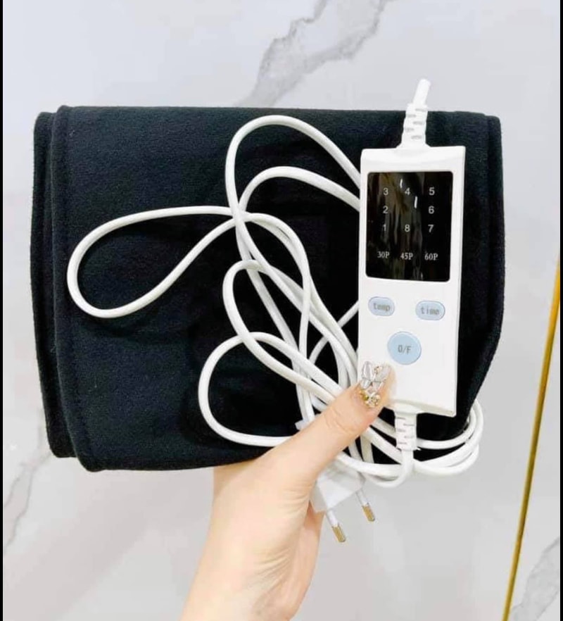 Bước 3. Sau đó sử dụng đai quấn nóng , chỉnh nhiệt độ phù hợp với cơ thể, ủ nóng từ 30-45 phút (không nên ủ quá lâu, quá nóng, nên điều chỉnh nhiệt độ giảm dần, không nên nằm ủ đai).