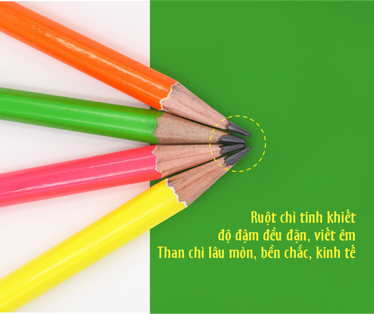 Ruột chì tinh khiết, độ đậm đều đặn, viết êm