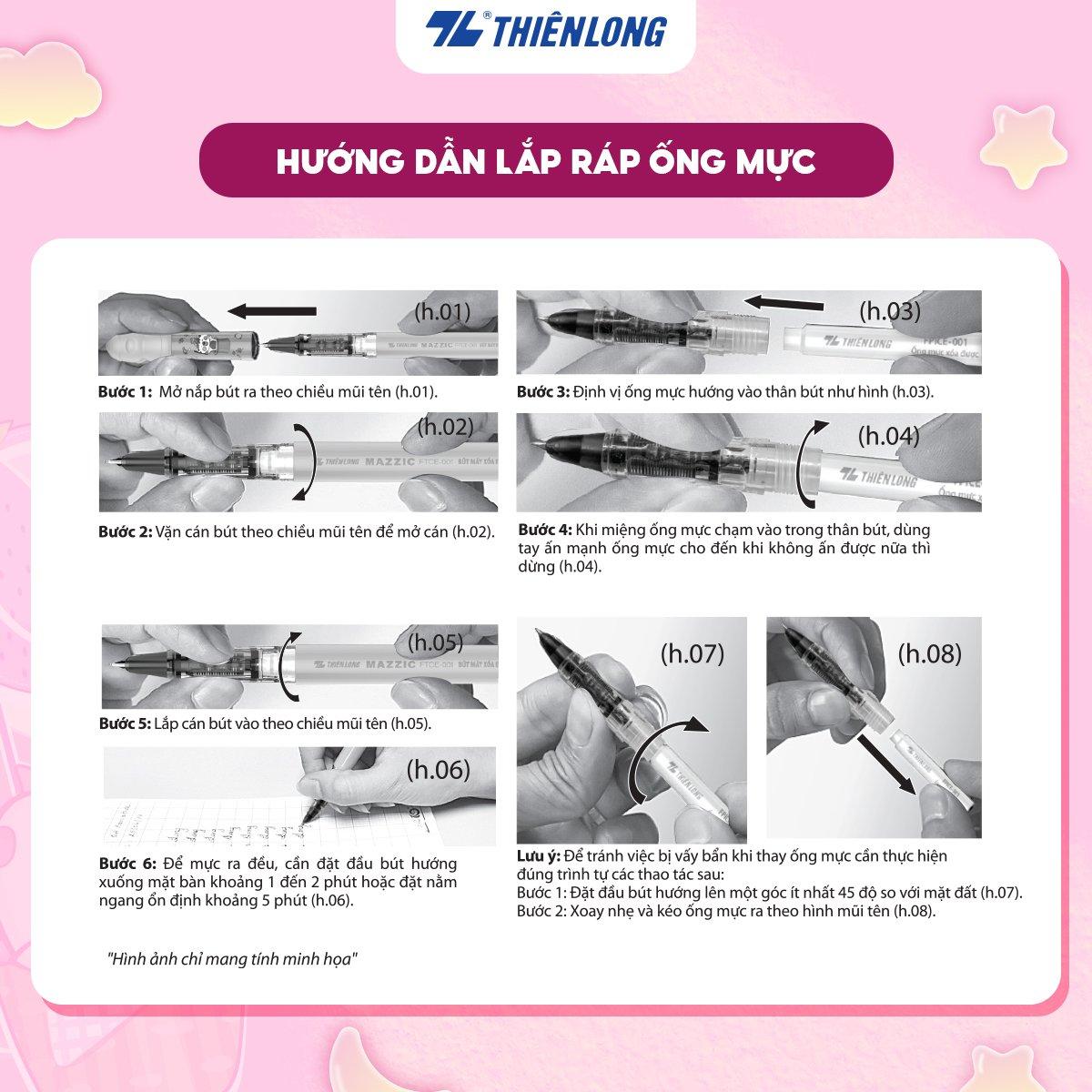 ✨Combo Bút máy và 10 Ống mực xóa được Mazzic Thiên Long - Ngòi cải tiến, trơn, êm với ống mực không lắng cặn