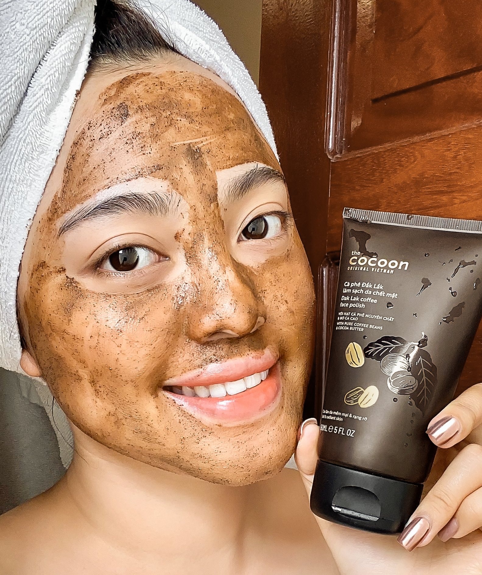 Mua tại TiktokCÀ PHÊ ĐẮK LẮK LÀM SẠCH DA CHẾT MẶT COCOON 150ML Cà phê Đắk Lắk làm sạch da chết mặt là sự kết hợp giữa những hạt cà phê Đắk Lắk nguyên chất xay nhuyễn giàu cafein, hòa quyện trong bơ cao Tiền Giang, kết hợp thêm dầu hoa rum và vitamin E mang đến các công dụng ưu việt như: