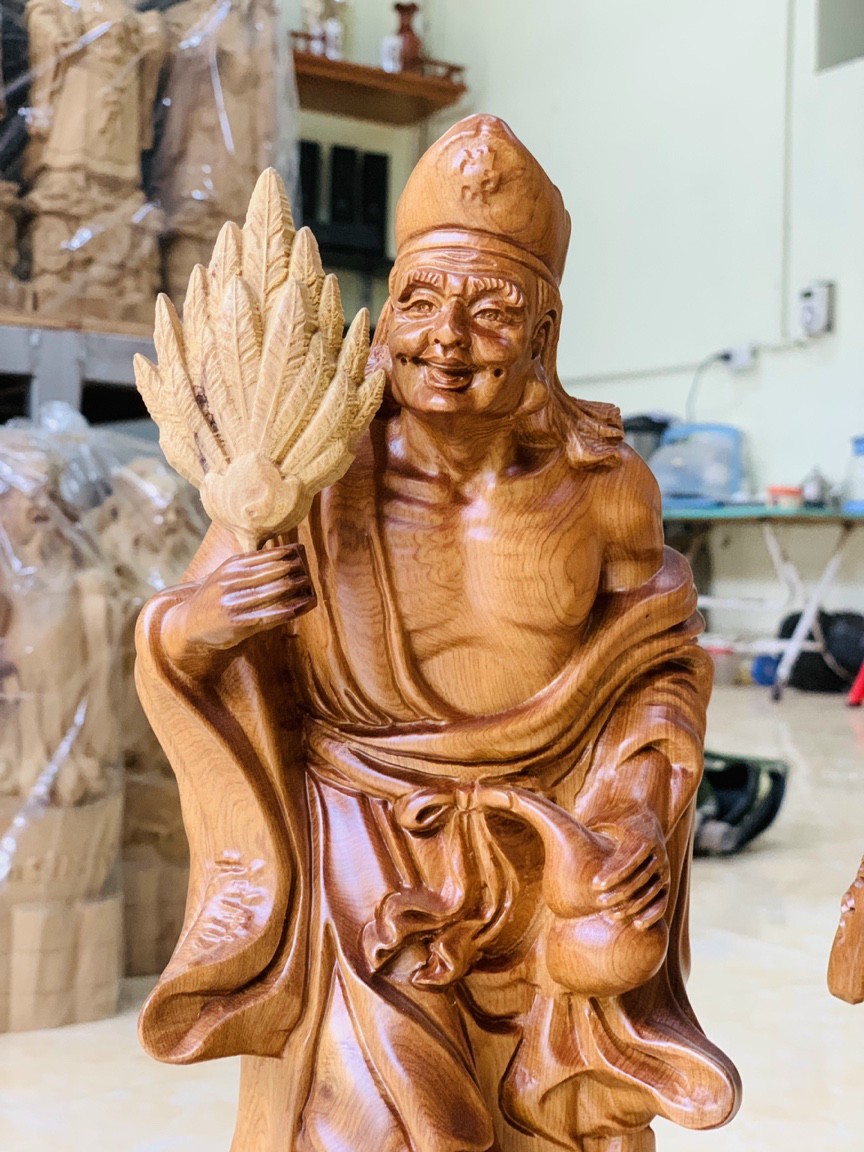 _ Tượng tùy duyên đụoc làm bằng chất liệu gỗ bách xanh liền khối tự nhiên 100% _ kt cao 15x6x5cm _ Tượng được chạm khắc gọt tỉa vô cùng ti mỉ tinh xảo kỳ