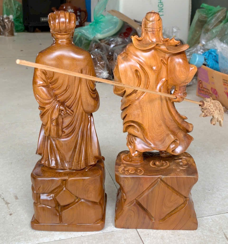 Tượng văn võ song toàn | Tượng gỗ Khổng Minh, Quan Công 80cm siêu đẹp