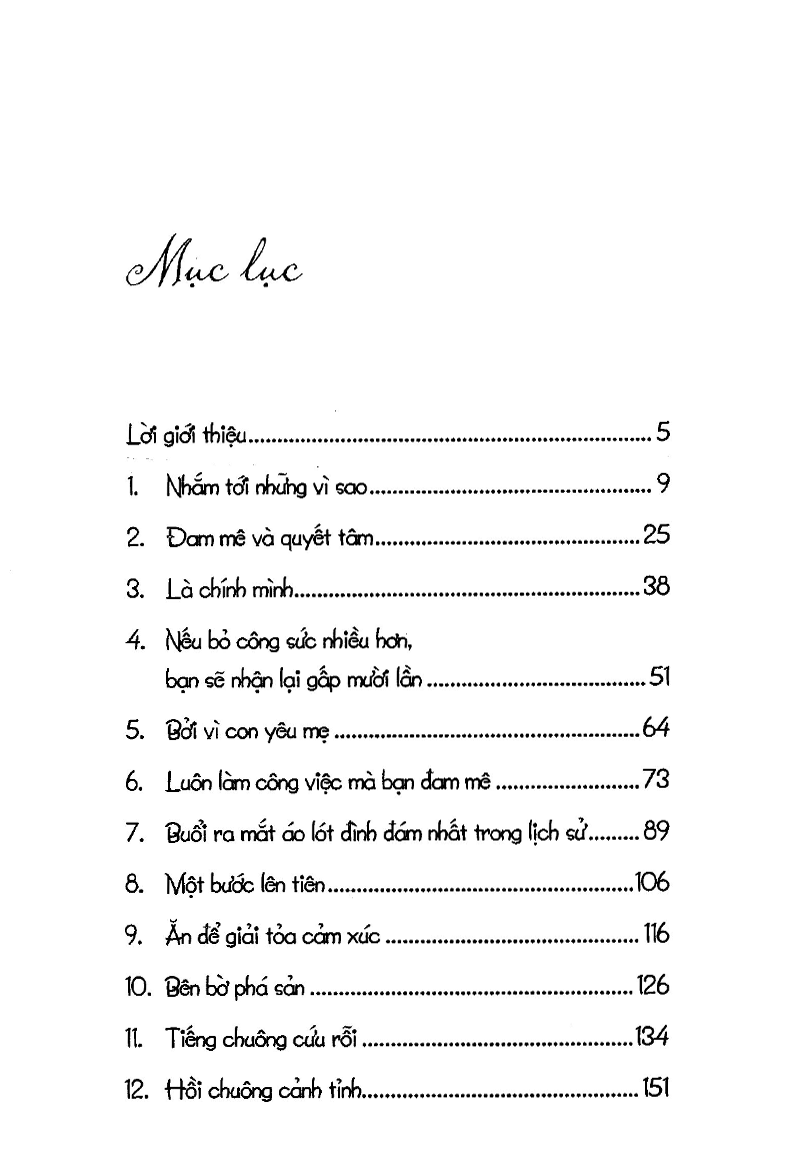 Tôi trở hành một người mẹ trẻ ở tuổi 20 và suýt nữa mất đứa con thứ hai khi thằng bé bị sinh non bốn tuần. Áp lực của việc vừa kinh doanh vừa cố làm một người mẹ tốt đã đẩy tôi đến bên bờ vực thẳm. Vào thời điểm tồi tệ nhất, tôi tăng cân đến mức phải mặc quần áo cỡ XL và từng nghĩ đến việc tự tử. Tôi đã xoay chuyển tình thế từ việc đứng bên bờ phá sản sang việc có hàng triệu đô - la trong ngân hàng. Tôi đắm chìm trong lối sống thượng lưu khi lái những chiếc xe bóng bẩy đắt tiền và đi ăn tiệm với những nhân vật nổi tiếng thế giới, như gia đình Clinton chẳng hạn. Tôi suýt nữa chết chìm trong thời khắc khó khăn nhất khi cuộc hôn nhân của tôi chính thức đổ vỡ trước công chúng. Tên tôi bị lôi lên khắp các mặt báo khi người ta phát hiện ra chồng tôi ngoại tình với trưởng nhóm thiết kế của tôi. Và sau đó tôi phải đấu tranh để giành lại doanh nghiệp mà tôi đã gây dựng từ hai bàn tay trắng” Đó chính là lời bộc bạch của bà trùm nội y Michelle Mone về cuộc đời mình. Mỗi ngày đều là một bước tiến , một nỗ lực không ngừng nghỉ, một sự hăng hái nhiệt huyết mạnh mẽ mà Michelle dành cho công việc và cuộc sống.