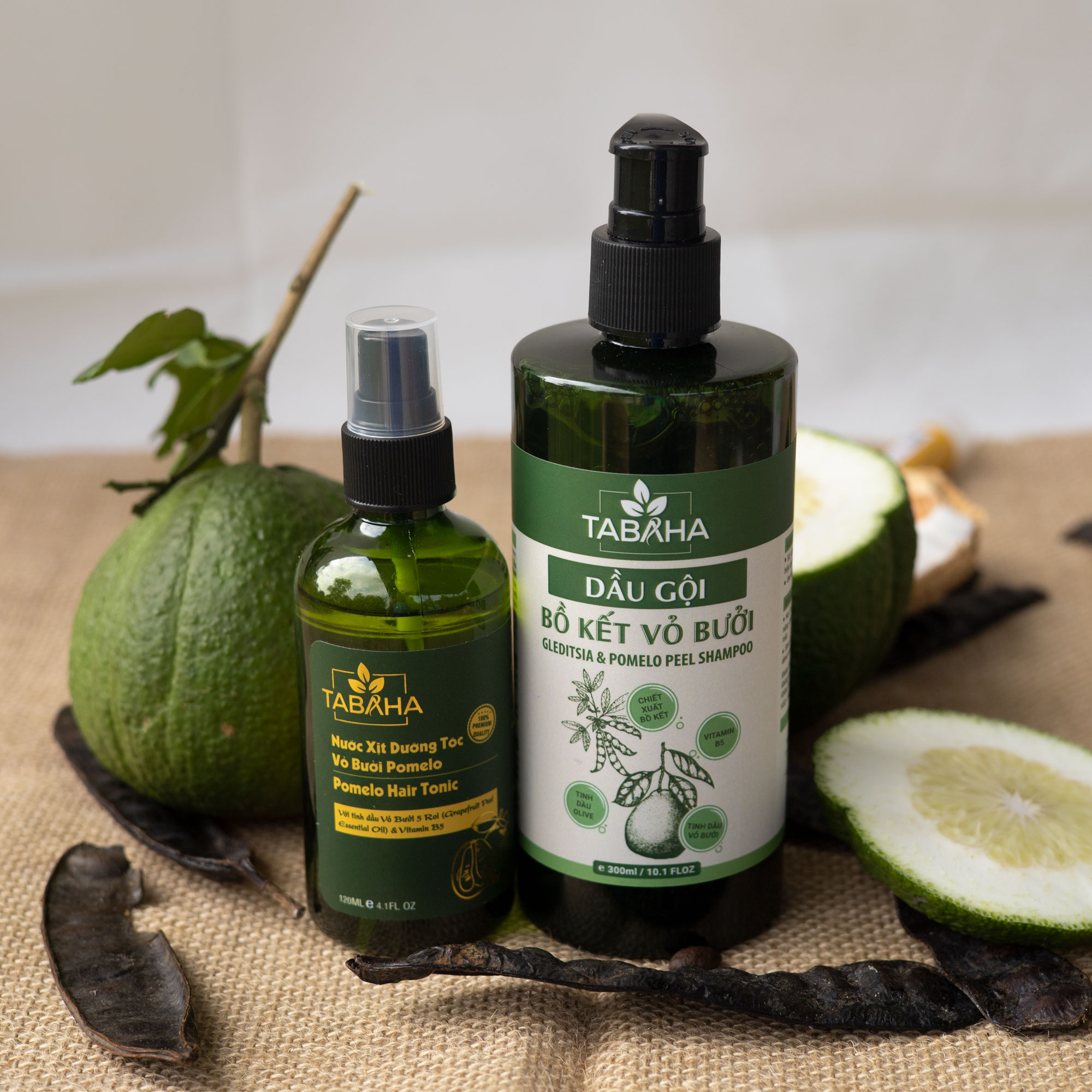 ✨Combo Dầu Gội Bồ Kết Vỏ Bưởi 300ml Và Xịt Dưỡng Tóc Tinh Dầu Bưởi Tabaha 120ml Giảm Rụng, Mọc Tóc Nhanh
