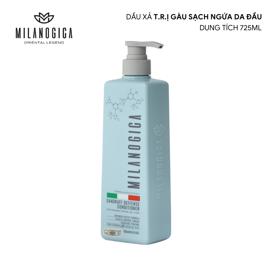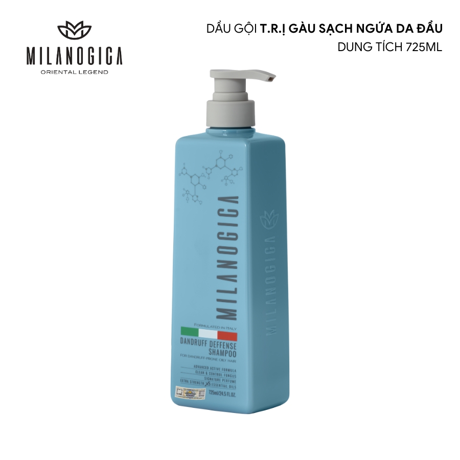 - Da đầu tiết bã nhờn sinh dầu thừa Hướng dẫn sử dụng: Bước 1: Chải mượt tóc trước khi gội Bước 2: Làm ướt tóc và gội qua 1 lần với nước Bước 3: Lấy 1 - 2 pumb hoặc nhiều hơn tuỳ lượng tóc dầu gội siêu phục hồi hư tổn ra tay và tạo bọt trên tay Bước 4: Da đầu có đặc tính khá mỏng, vì vậy hãy massage da đầu nhẹ nhàng giúp kích thích máu huyết lưu thông tốt hơn và hạn chế tình trạng rụng tóc. Sau đó xả sạch với nước Bước 5: Lặp lại bước 3 và 4 một lần nữa với dầu gội siêu phục hồi hư tổn Milanogica Lưu ý: Tách tóc và massage phần da đầu để nhũ hóa bã nhờn trên da đầu và làm sạch nang tóc Bước 6: Lấy 2 - 3 pumb hoặc nhiều hơn tuỳ lượng tóc dầu xả siêu phục hồi hư tổn. Sử dụng dầu xả từ phía thân tóc xuống ngọn, hạn chế thoa lên toàn bộ tóc, đặc biệt là da đầu Lưu ý: Chỉ nên xả tóc trong khoảng 5 – 7 phút