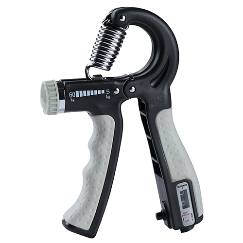 Bộ sản phẩm gồm : - Kìm bóp tập tay chữ R có máy đếm số màu : ĐEN-XÁM kích thước : 16x11cm Kết cấu lõi bằng thép, phần ngoài của tay cầm bọc nhựa