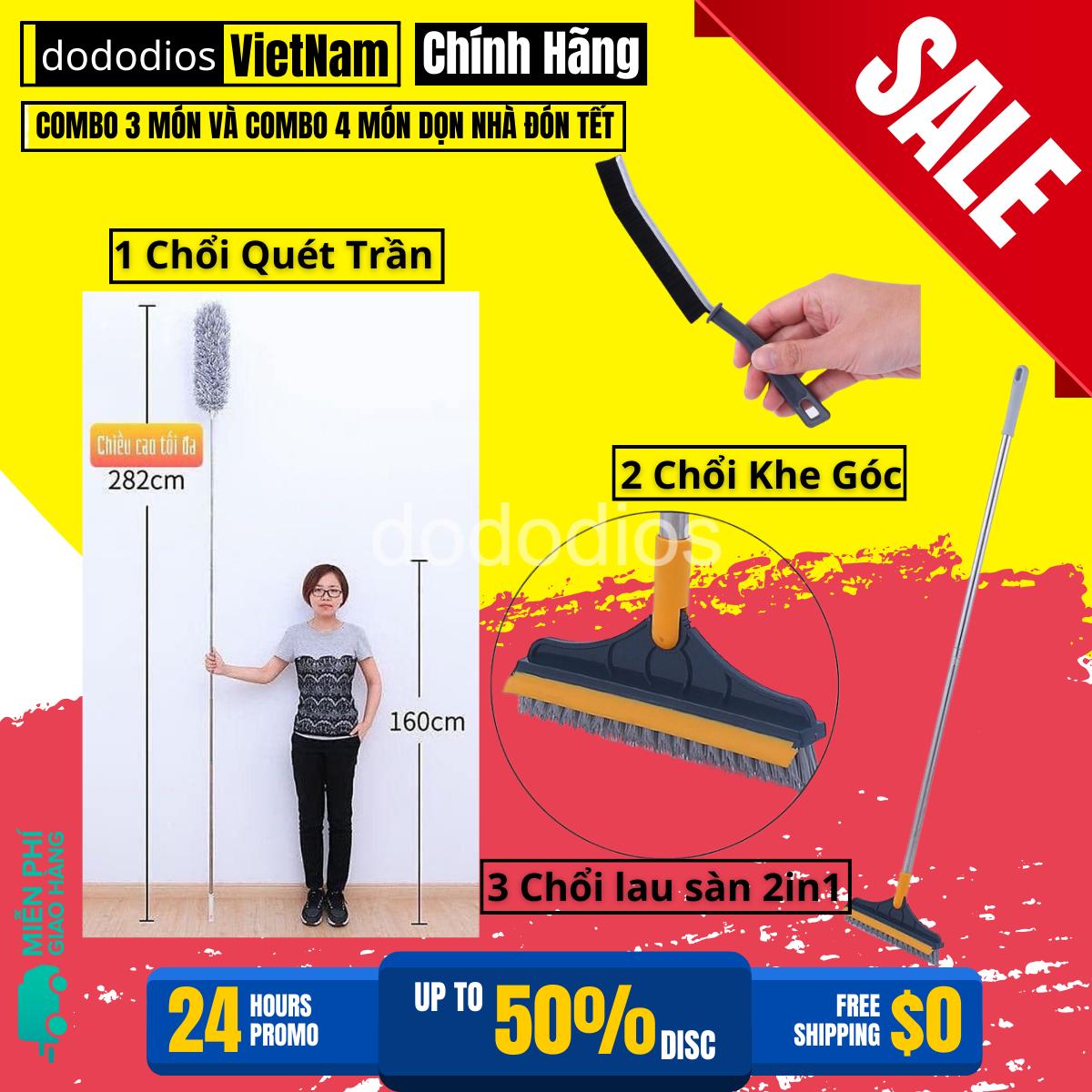 Combo Dọn Nhà 3 Món : Chổi Chà Cọ Nhà Vệ Sinh + Chổi Quét Trần Nhà + Bàn Chải Khe Hẹp - Hãng dododios Một nhóm đầy đủ các dụng cụ dọn nhà sẽ