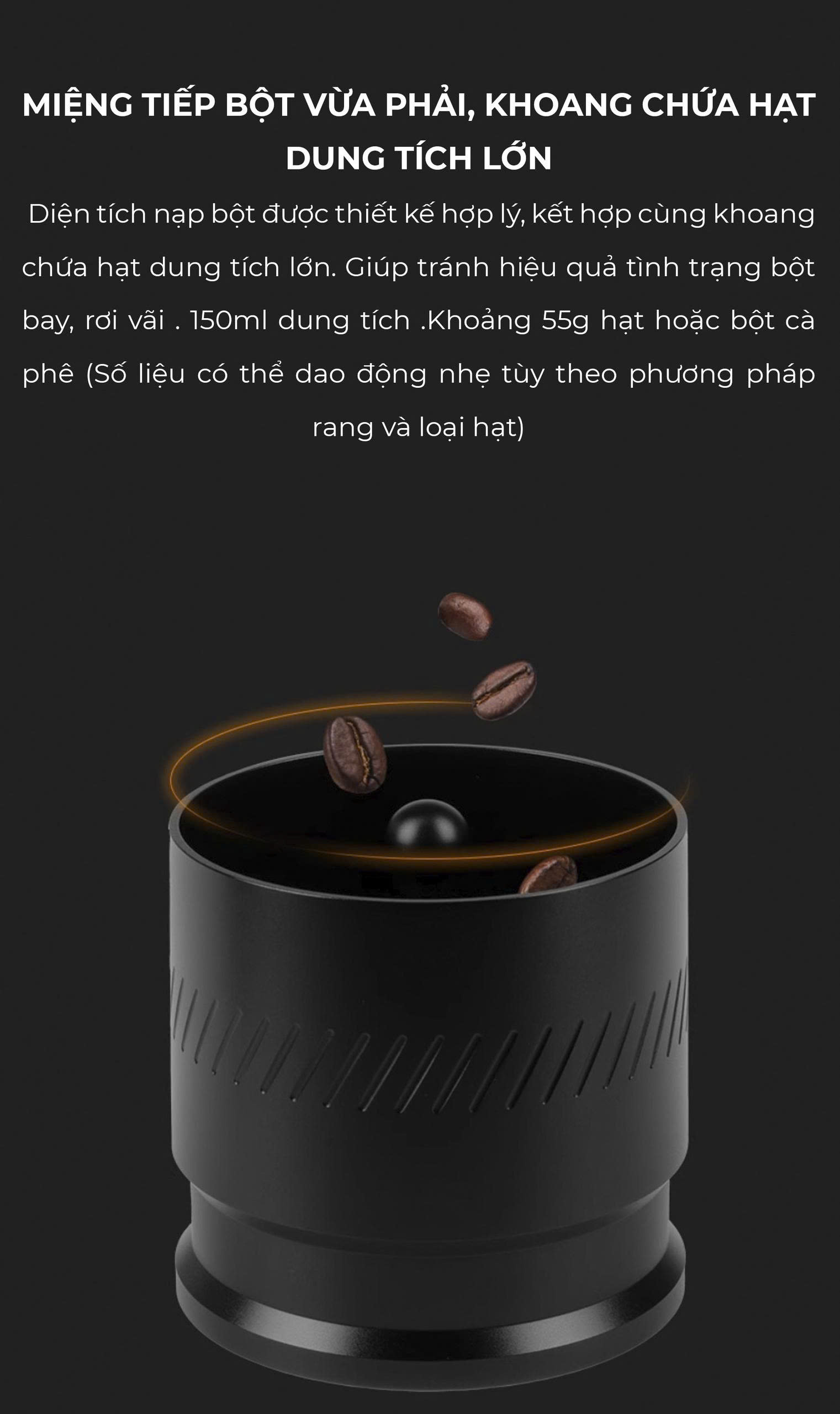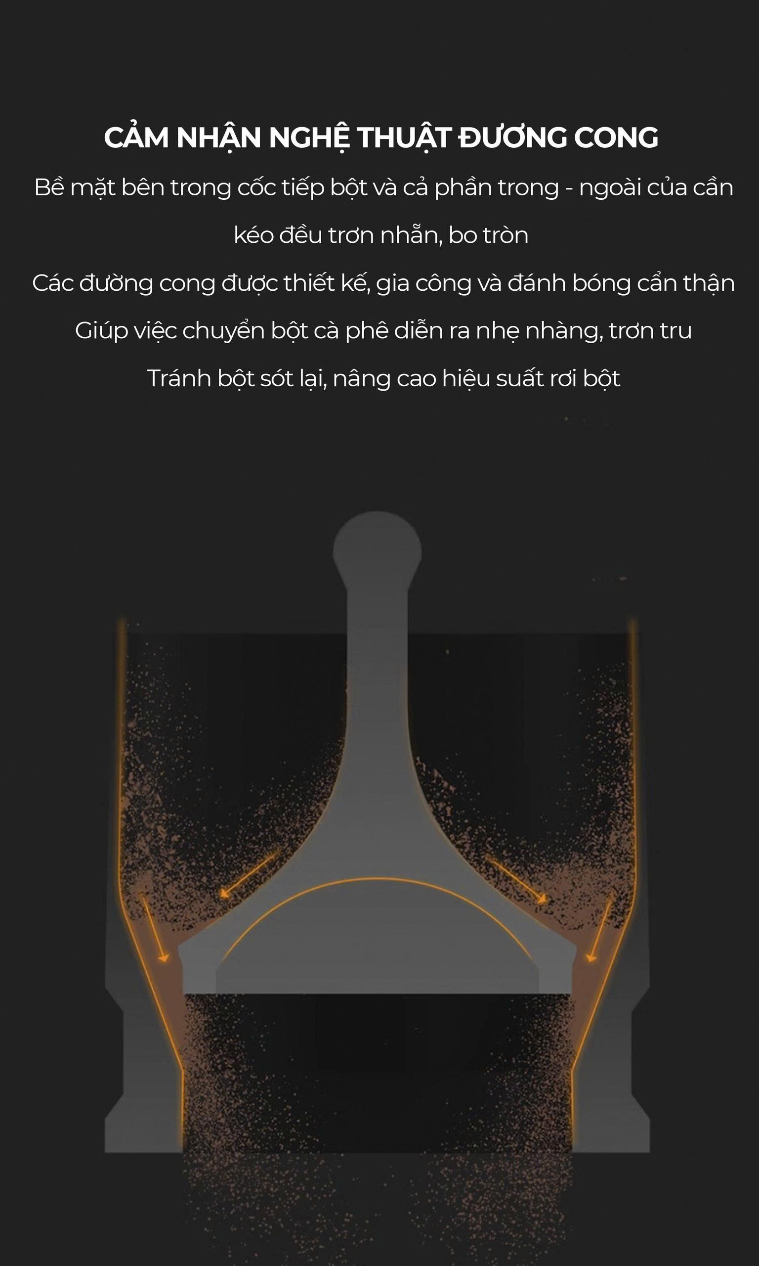 - Dosing hứng đong cà phê THOR • Thiết kế nghiêng dễ đổ bột, hạn chế bắn tung • Phân phối bột đều, chuẩn từng shot