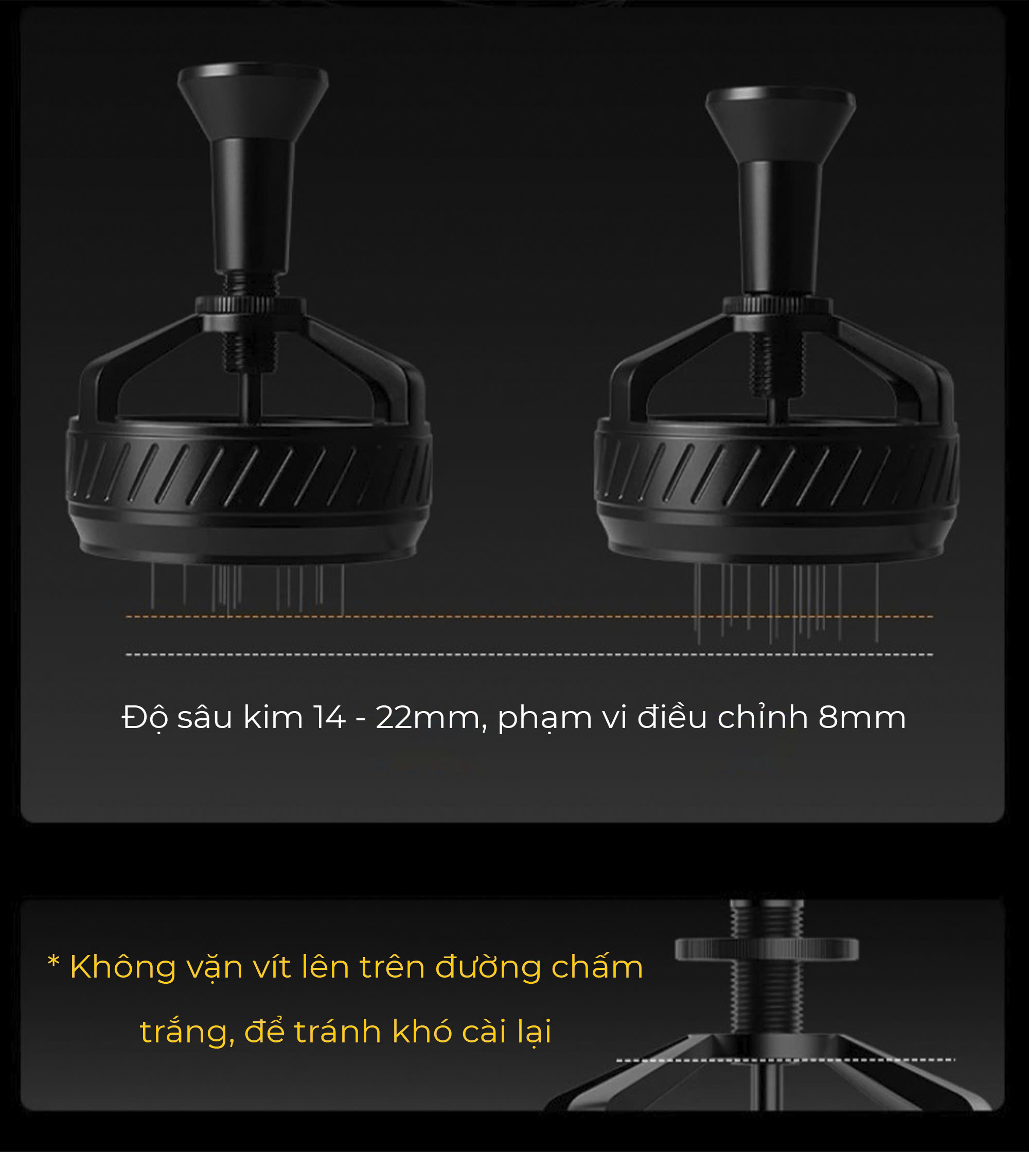 - Kim xoay tán đều bột THOR • Xoắn ốc đều tay – đĩa kim quay tròn khi ấn • Phân bổ bột đồng đều, không vón cục