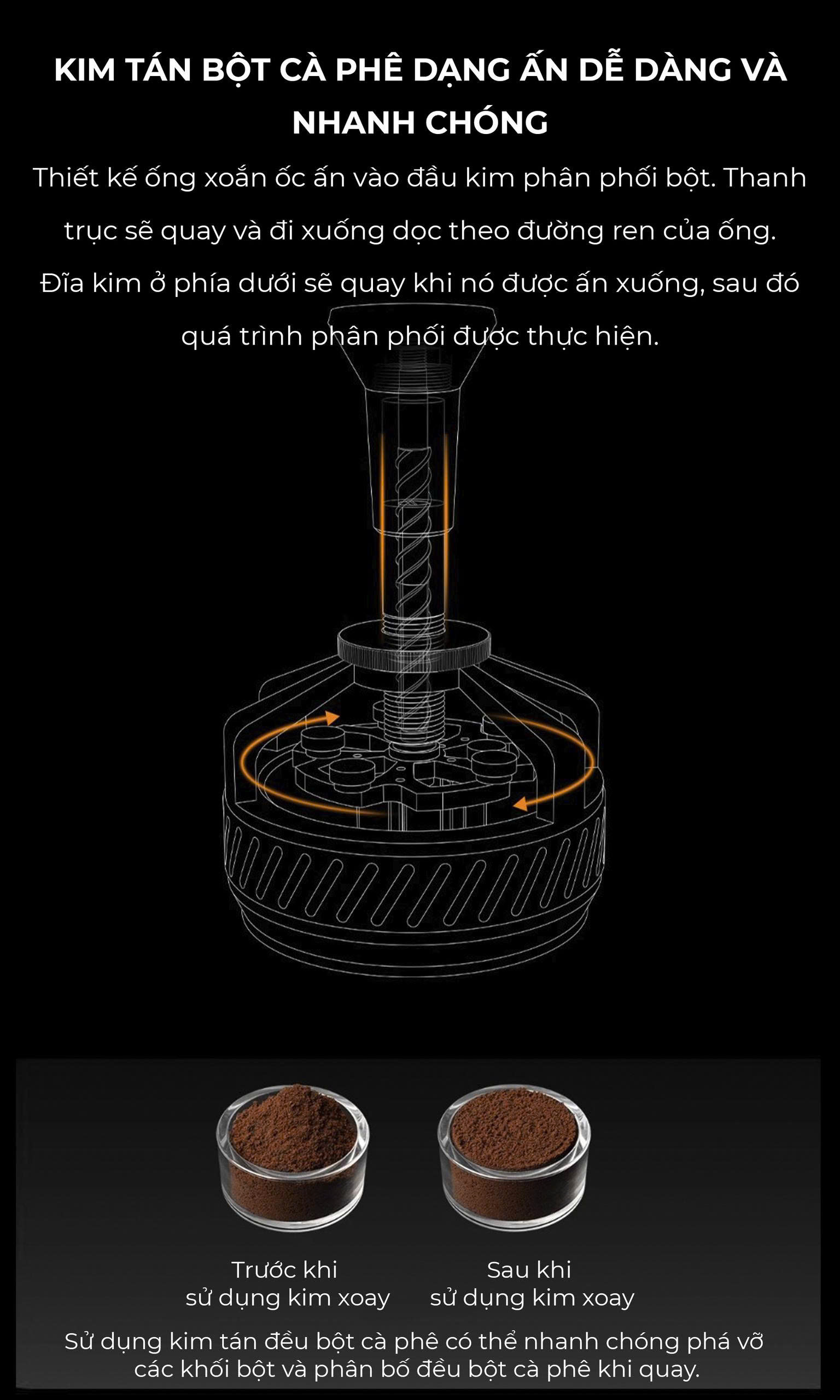 FEEPIE KIM XOAY TÁN BỘT CÓ VÒNG ĐỆM CAO SU – TỐI ƯU CHIẾT XUẤT, CẢI THIỆN CREMA! Bạn muốn phân bố bột cà phê đều hơn, hạn chế kênh rãnh để có chiết xuất