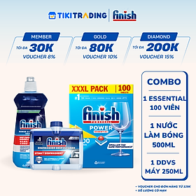✨Combo Finish tiện lợi 1:Hộp 100 Viên Rửa Bát Finish Essential+ Nước Làm Bóng 500ml+ Dung Dịch Vệ Sinh Máy 250ml