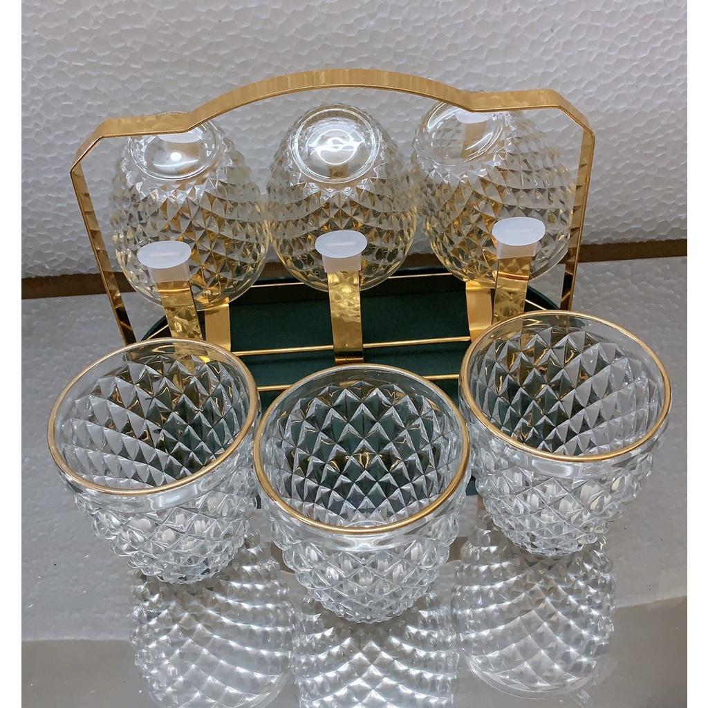 ✨Combo giá úp cốc mạ vàng có khay hứng nước kèm 6 cốc loe vân hạt kim cương
